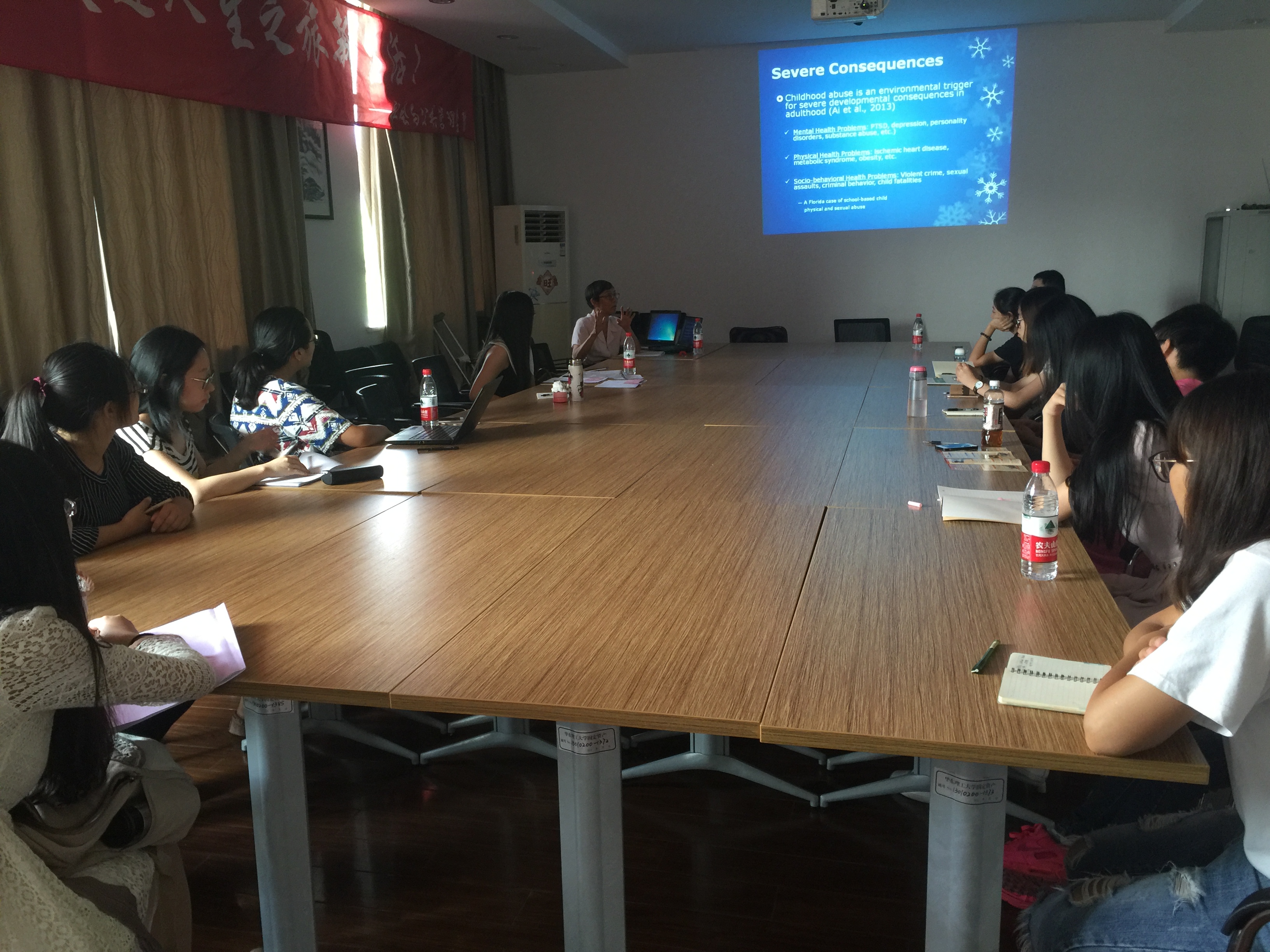 日前,美国佛罗里达州立大学社会工作学院Amy L. Ai教授来pg游戏官网社会学院交流,商谈合作研究以及双方师生交流事宜。应pg游戏电子模拟器院长何雪松教授邀请,Amy L. Ai教授9月9日下午15:00在五教402室作了题为“美国最大少数民族群体中儿童期受虐待、创伤后应激障碍与药物滥用的关系”的讲座。讲座由社会学院院长助理、社会工作系副主任黄锐老师主持,参加讲座的有社会工作系青年教师,以及社会学院本科生、研究生等,共二十余人。