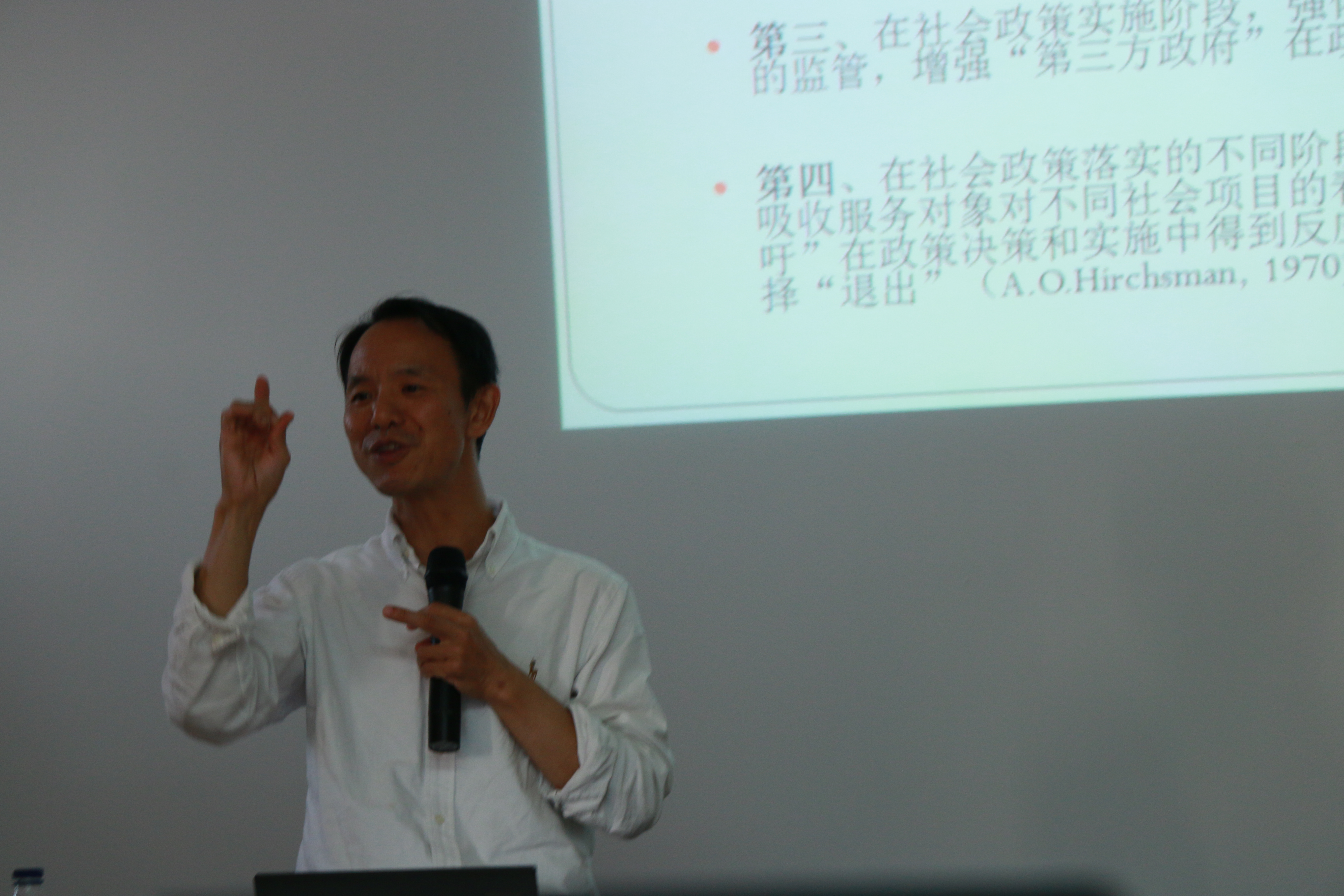 应社会学院院长何雪松教授邀请,著名社会学家、北京大学社会学系熊跃根教授,于9月24日下午3点在五教402室举办了题为“地方政府的社会治理与社会政策实施”的学术报告。报告由黄玉琴副教授主持,众多青年师生参加讲座。