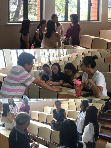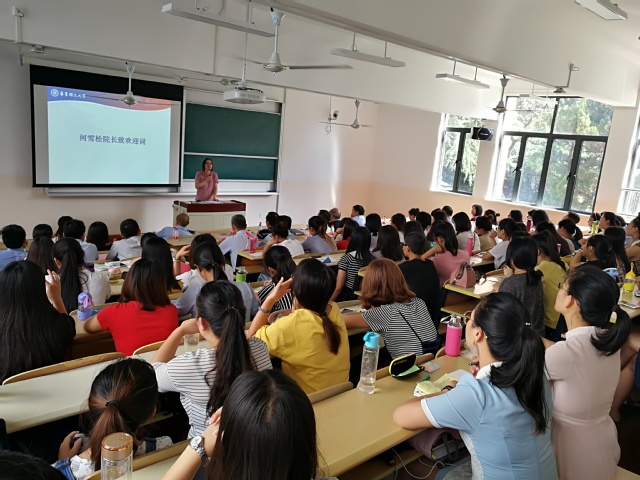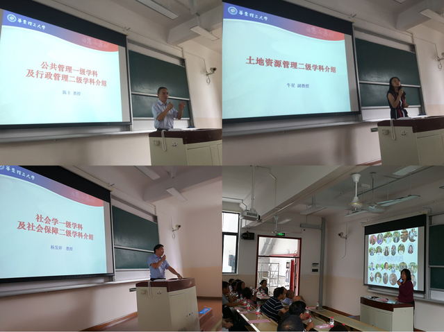 一片激情澎湃之后,各专业导师代表陈丰教授、牛星副教授、杨发祥教授、费梅苹教授向大家分别介绍了各院系建设、学术成果、学生培养、就业前景等各方面的具体情况。这使得在座新生对自己的专业有了更深的了解,也对自己的发展方向有所思考。各位老师代表热情洋溢的言语之中都表达了对新生们的欢迎和祝福,教室里掌声一片。
