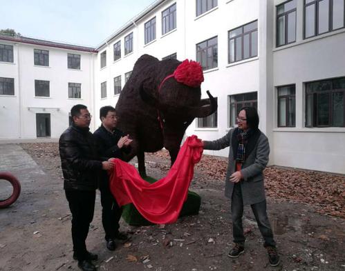 图为pg游戏官网教师与海宁一行“头牛剪彩”仪式合影