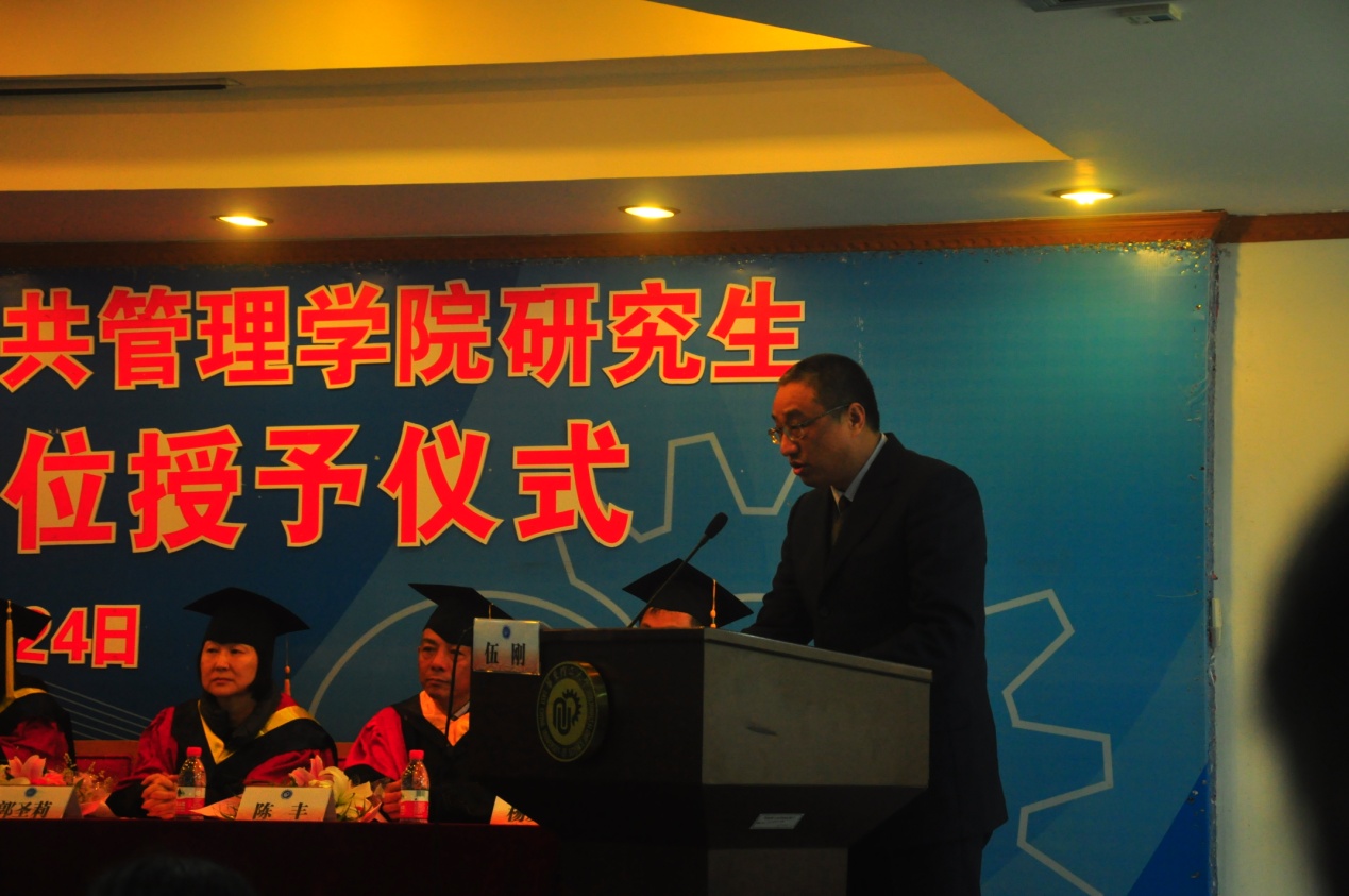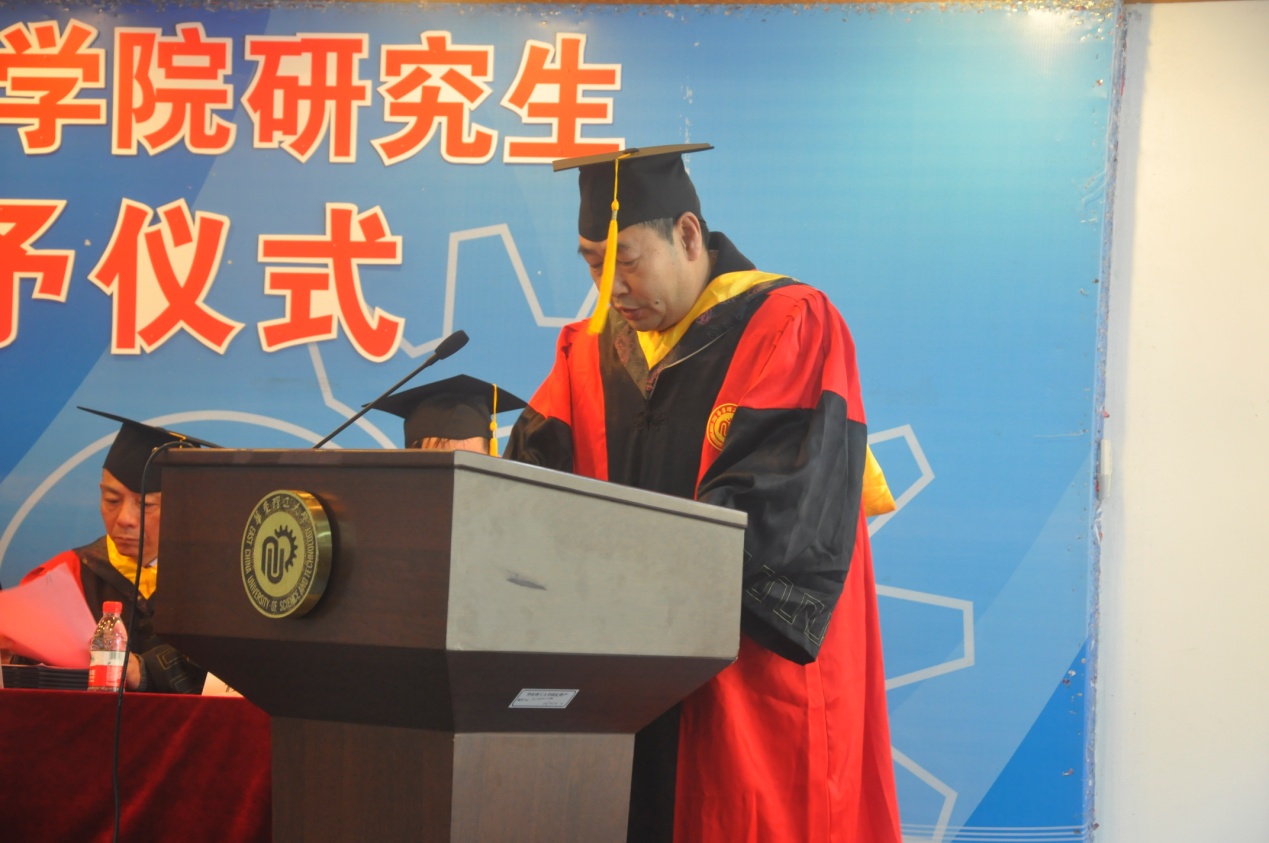 伴随着嘹亮的国歌声,毕业典礼正式开始。院党委书记张广利宣读校学位评定委员会公告,授予刘炳辉等4人博士学位和陈昌军等60人硕士学位。在激昂的音乐声中,毕业生依次上台,学院领导为获得学位的毕业生们援正流苏,颁发学位证书。