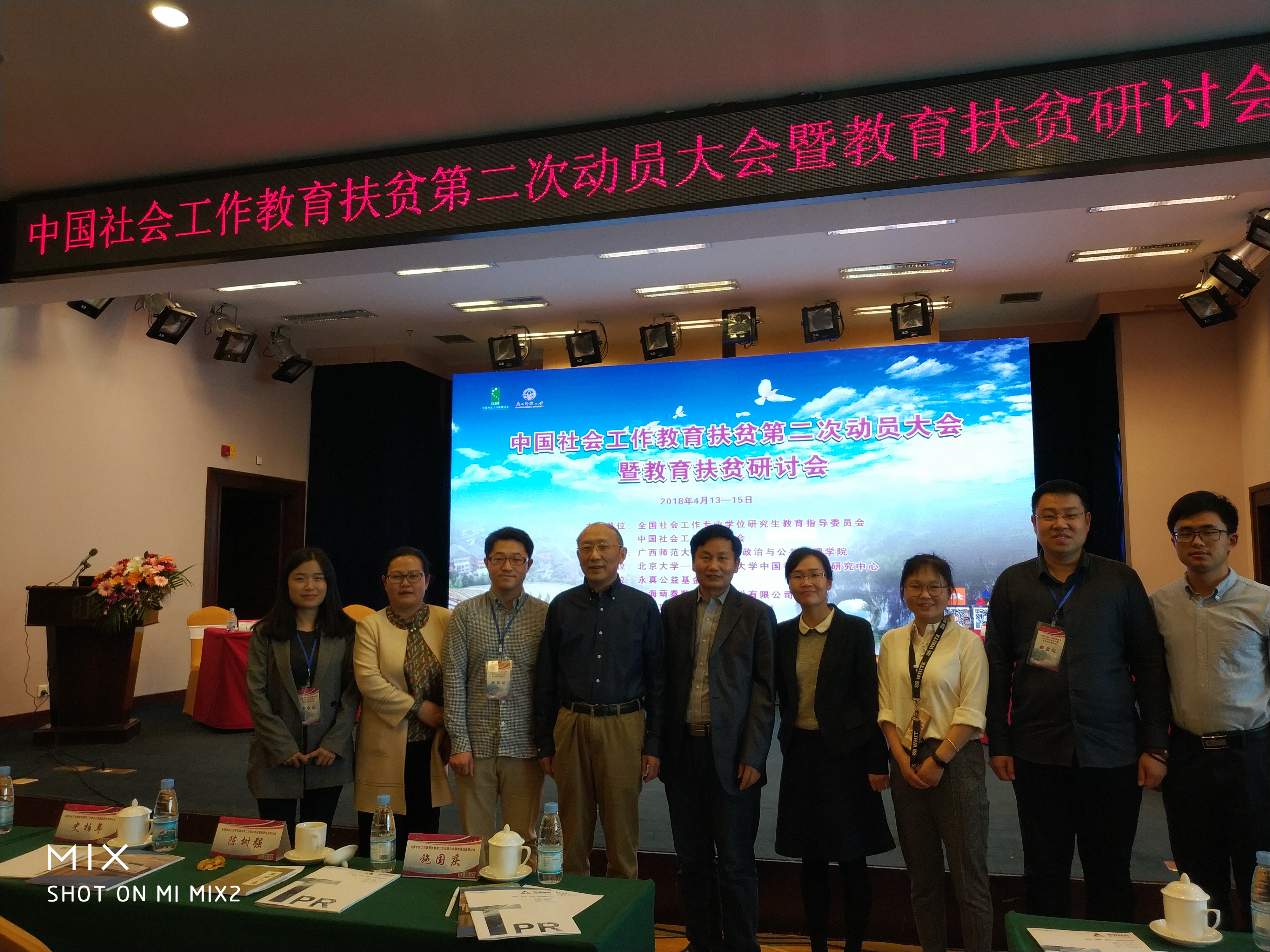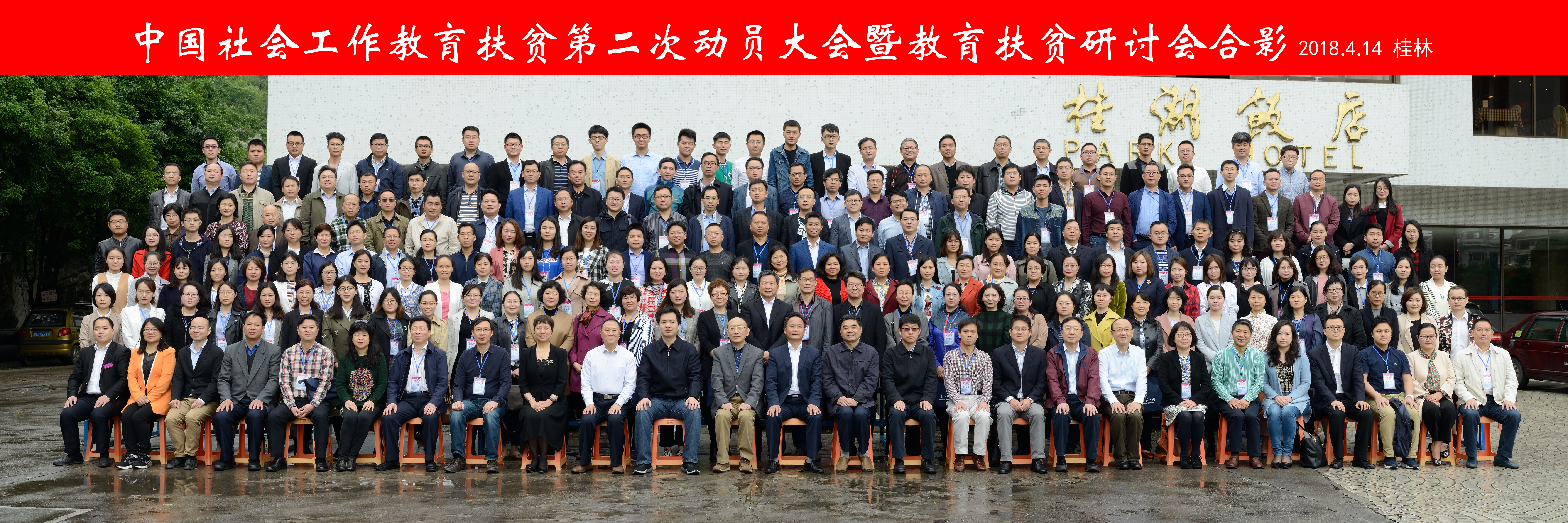 中国社会工作教育扶贫第二次动员大会暨教会扶贫研讨会,于2018年4月13日—4月15日在广西桂林召开。本次研讨会由中国社会工作专业学位研究生教育指导委员会、中国社会工作教育协会主办,广西师范大学法学院、政治与公共管理学院承办,北京大学-香港理工大学中国社会工作研究中心协办。来自多所高校的专家学者和政府官员齐聚一堂,共同探讨我国脱贫攻坚最后一战,为社会工作教育参加精准扶贫做第二次动员。中国社会工作教育协会会长、pg游戏电子模拟器上海高校智库社会工作与社会政策研究院院长、社会工作系徐永祥教授带领pg游戏电子模拟器副院长杨发祥教授、社会工作系副主任黄锐副教授、MSW教育中心副主任刘艳霞老师和博士生刘振、郭儒鹏、徐立娟等一行师生共同参加了此次动员大会暨教育扶贫研讨会。