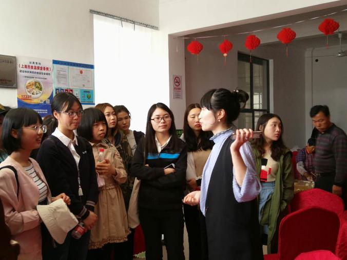 上午八点半,社会学系师生从奉贤校区乘坐大巴出发,经过四十分钟的车程到达四团镇五四村。五四村村委会的陈老师热情接待了师生们。在调研开始之前,社会学系主任汪华老师强调同学们要带着问题和思考来看待生活中的事物,在调研中更深刻地理解社会学理论。陈老师首先带师生们参观了五四村的农家乐会所,就五四村的风俗习惯进行讲解,让同学们体验到一方水土一方风俗的魅力。