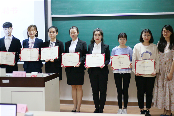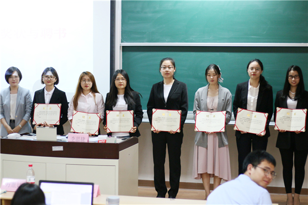 大会颁奖环节,万胤婕、严任舟以及韩伟老师分别为获奖者以及主席团、部长们颁发2017-2018年度pg游戏电子模拟器研会“优秀个人奖”和2017-2018年度pg游戏电子模拟器第十三届研会主席团、部长聘书。