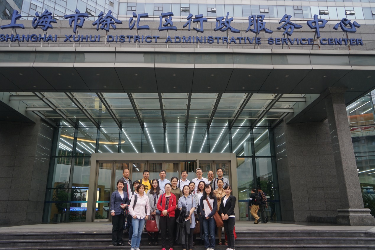 22日下午,学院教师来到位于上海市南宁路的徐汇区行政服务中心,感受“互联网+”为徐汇政务服务带来的便利。在整个参观过程中,工作人员针对智能信息化设备做了详细介绍。“家门口、指尖上、一体化”是徐汇区构建政务服务便捷化的目标,也是中心的使命。在探索“互联网+政务服务”之路上,中心正不断加快线上线下的融合,通过数据共享和协同审批,形成了“一号受理、一窗办理、一网运行、一办到底”的完整链条。值得一提的是,在中心有一套“高大上”的“城市天眼”综合管理体系。通过与市区两级大数据的联动与对接,在大屏幕上,包括城市网格化综合管理中心值班人员、城市管理方面各区域的总发现数、街镇事件分布、任务编号、案件来源以及各个路口通道的实时高清监控都可以全部掌控。