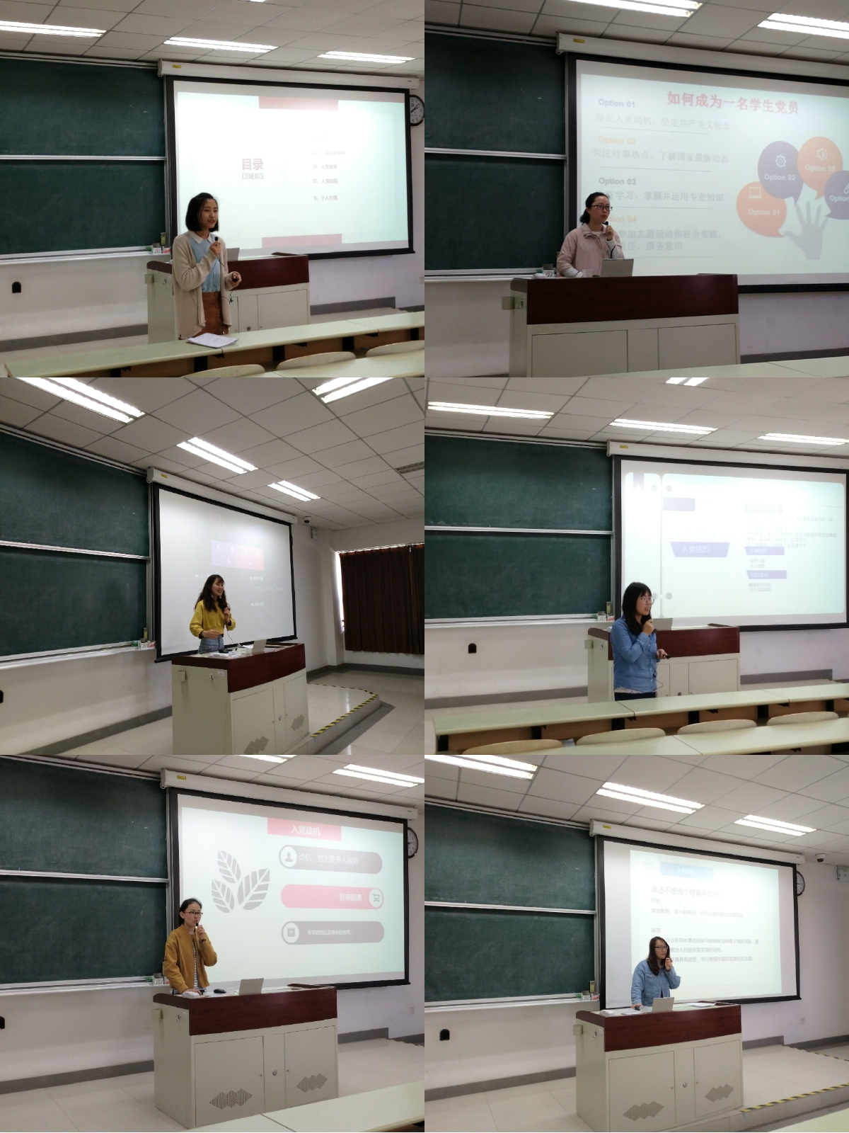 在第一讲中,易如老师以“不忘初心,继续前行”为主题,从“人”、“共产主义”、“资本主义批判”三个角度展开对马克思主义的解读,指出人们依然处在马克思主义所指明的历史时代,马克思主义是共产党人信念的灵魂;第二讲中,高年级优秀学生党员分享他们在入党道路上的心路历程和入党动机的变化,从朋辈引导的角度教育低年级入党积极分子端正入党动机,不断提升自身素养,积极向党组织靠拢;第三讲中,徐永祯老师以“重温红色的记忆”为主题,从中共二大讲起,带领大家回忆了中国共产党的艰难岁月;第四讲中,张广利老师为大家解读了2018年两会基本情况,政府工作报告内容中的关键词进行解析,引导同学们关心时政,勤于思考。5月25日下午,中级党校正式结业,通过闭卷考试的方式考察学生对于中国共产党的认识以及党校课程的学习成果,严把党员入口关。