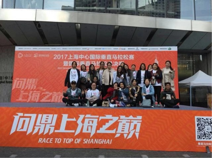 图5 行管152班全体成员在上海中心国际垂直马拉松赛现场