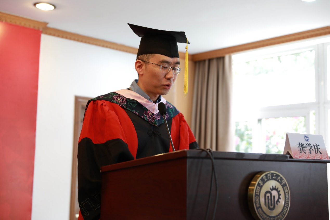 教师代表杨君老师发言。他指出,毕业生在走向社会时,可能会面对诸多危机和挑战,应时刻脚踏实地,不忘自己的追求,不忘改变社会的初心,在学校之外的领域也能收获满满。他希望毕业生视华理如初见,时时想念。
