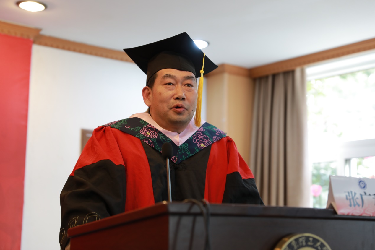 张广利老师教授感叹时光飞逝,感谢各位老师和家长培养出了这样一批优秀的毕业生,为社会提供了宝贵的人才资源。同时,他引用古希腊哲学家泰勒斯的名言,嘱咐毕业生不只为“小家”而奋斗,应该有更高的追求,学会关注天空而不只是脚下。做一个不仅有经济理性,还拥有社会理性的人