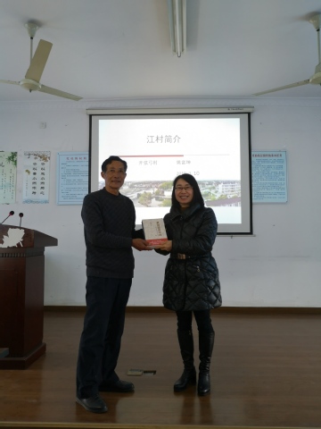 村民姚富坤有“农民社会学家”之称,他对江村的发展变迁有着系统的研究,曾多次接待来访的费孝通先生。参观结束后,姚老师介绍了开弦弓村从1930年代以来人口、经济、产业、文化方面的变化。尤其在产业转型方面,费老当年调研的种地、养蚕等传统生计活动基本消失殆尽,如今呈现出“鱼米之乡不产米,丝绸之乡不产丝”的现象。详实的数据结合生动的故事和回忆,姚先生的讲座使同学们对开弦弓村的前世今生产生了浓厚的兴趣。