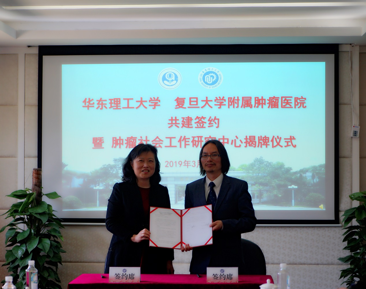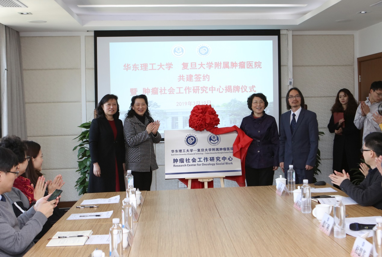 会上,何雪松何顾文英分别代表pg游戏电子模拟器与复旦大学附属肿瘤医院签署了肿瘤社会工作研究中心共建协议。签约结束后,杜慧芳、何雪松、顾文英、俞军共同为肿瘤社会工作研究中心进行揭牌并合影留念。