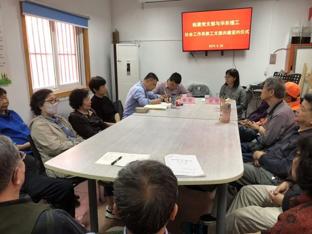 2019年5月20日上午,社会工作系教工党支部与康健街道桂康社区党支部举行了党建共建协议签约仪式。康健街道社区党建办主任赵明出席并主持了签约仪式。社会工作系教工党支部书记梁昆同志、桂康社区党支部书记缪东君同志代表双方在党建共建仪式上签字。双方将以区域化党建为引领,以党建共建为抓手,凝聚力量,推动区域社会治理和社会服务高质量发展。桂康社区党支部党员们还与社会工作系教工党支部代表梁昆同志,就具体服务项目需求展开了讨论。
