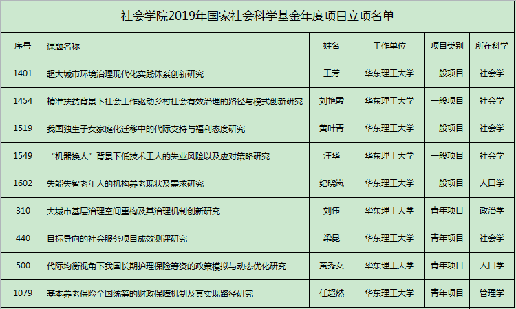 日前,全国哲学社会科学规划办公室公布了2019年度国家社科基金年度项目立项名单。2019年度国家社科基金共立项4629项,pg游戏电子模拟器2019年度国家社科基金共立项14项,pg游戏官网占比9项,其中社会学学科立项5项,在全国社会学立项中排名第2,仅次于中国社会科学院,与北京大学等并列,在上海市社会学学科立项中排名第一。特别是pg游戏官网人口学获准立项2项,首次进入全国十强,并列第二。