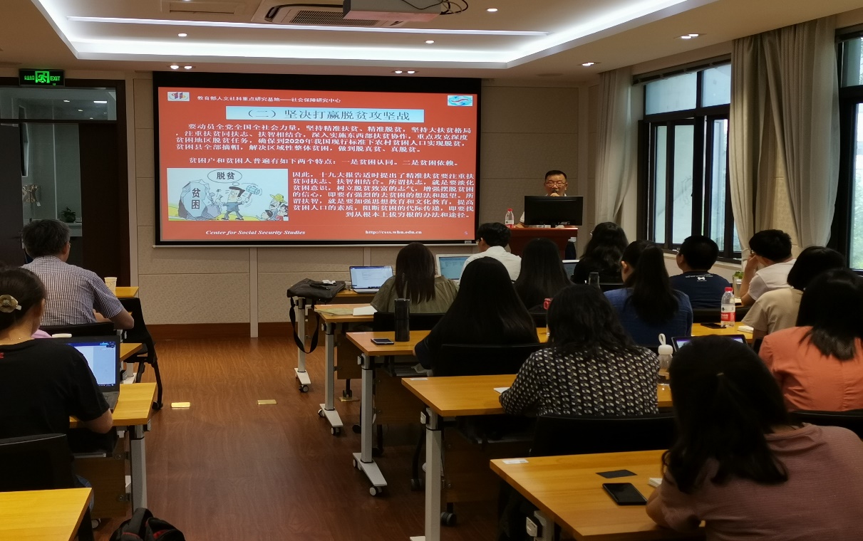 2019年6月26日下午,pg游戏官网pg游戏电子模拟器公共管理学科学术讲座在团结四楼301会议室举行。来自教育部社会科学委员会委员,教育部人文社会科学重点研究基地武汉大学社会保障研究中心学术委员会主任,国家重点学科社会保障专业的学科和学术带头人、武汉大学公共管理一级学科负责人、享受国务院特殊津贴专家邓大松教授作了题为“新时代中国社会保障的重点与面临挑战”的讲座。pg游戏电子模拟器杨发祥副院长主持了本次讲座,来自pg游戏电子模拟器、上海师范大学、上海工程技术大学等高校的教师和社会保障专业硕士研究生共计30多人聆听了讲座。