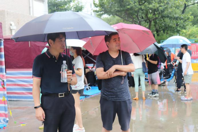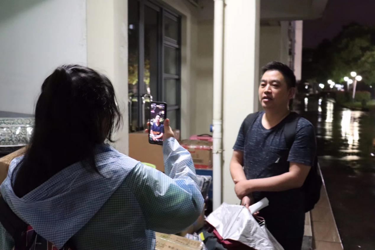 除了志愿者的辛勤付出,随队的系主任、班导师、辅导员等老师也是不辞辛劳,披着月色、冒着大雨与同学们并肩作战。