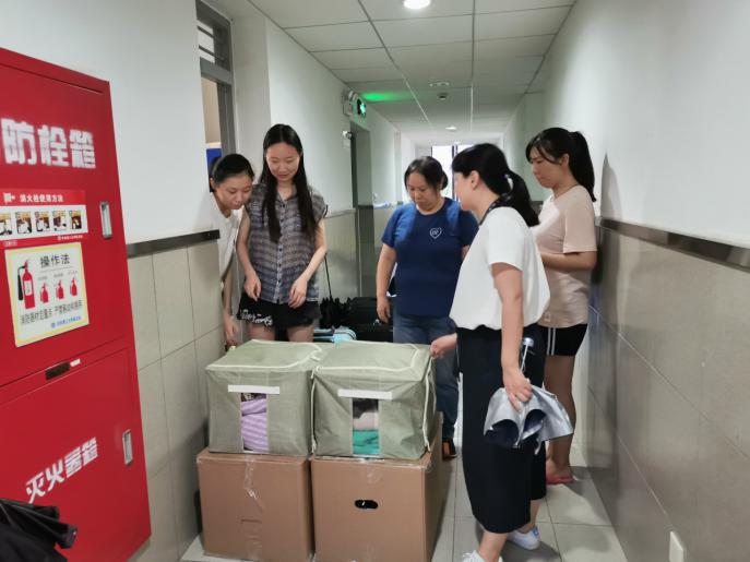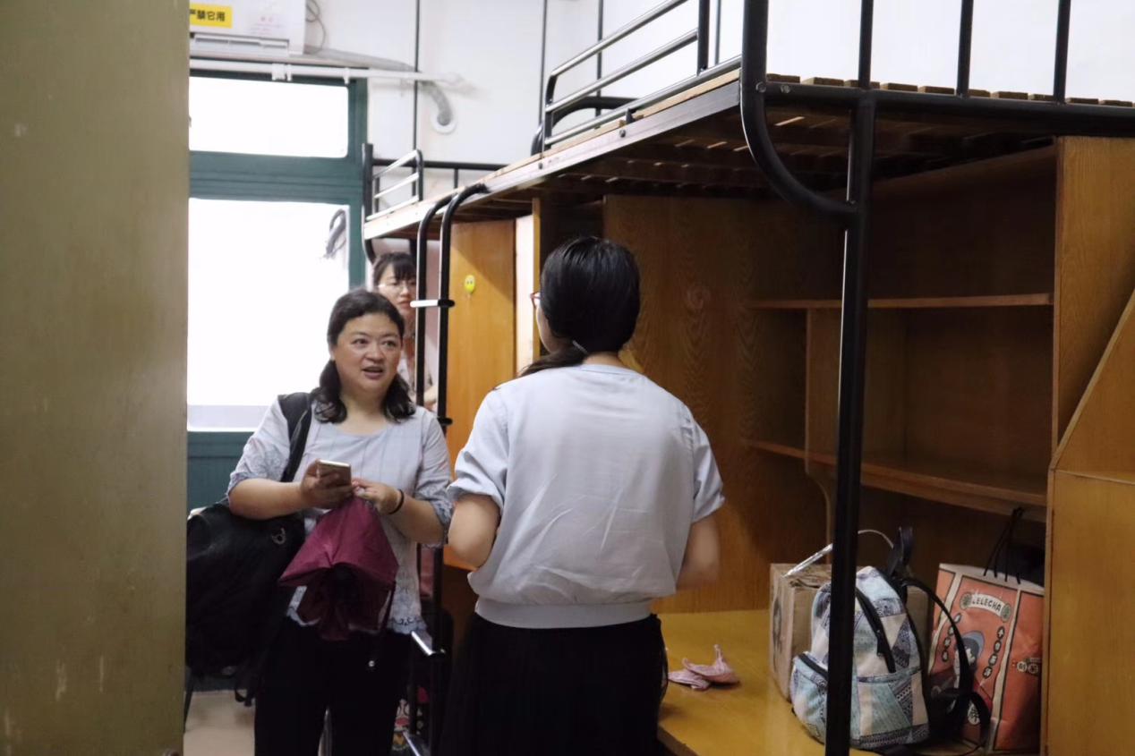 老师在12日晚上进宿舍关心同学们行李收拾情况,叮嘱13号搬迁注意事项。