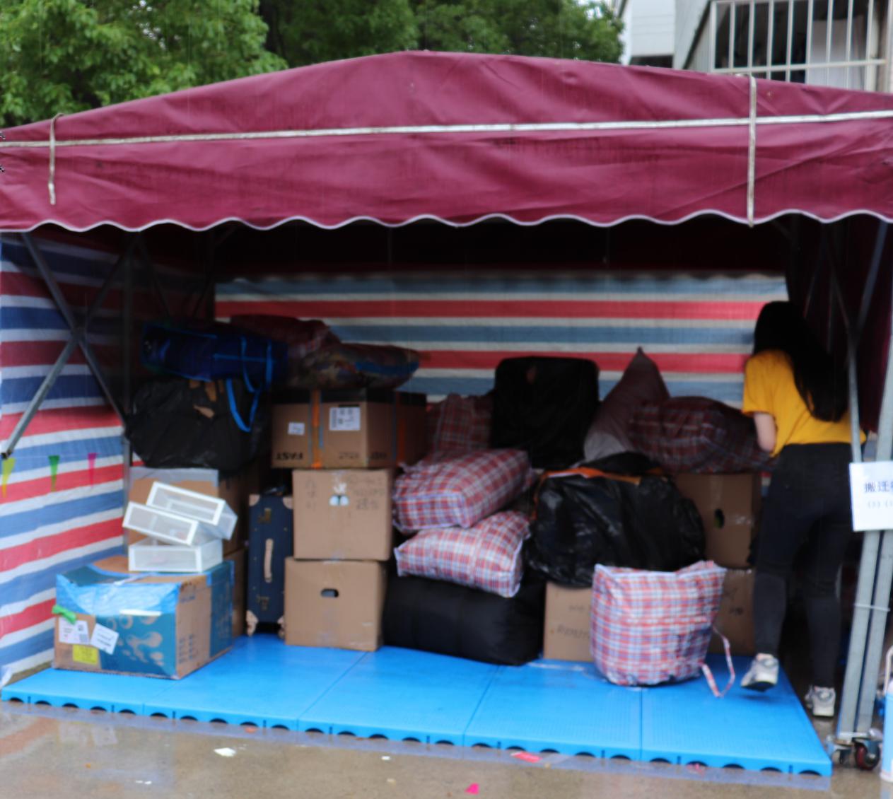 七点多钟,三个批次陆续到达徐汇校区。冒着大雨,在义务搬迁志愿者的协助之下,很快地完成了行李的卸货与运输。
