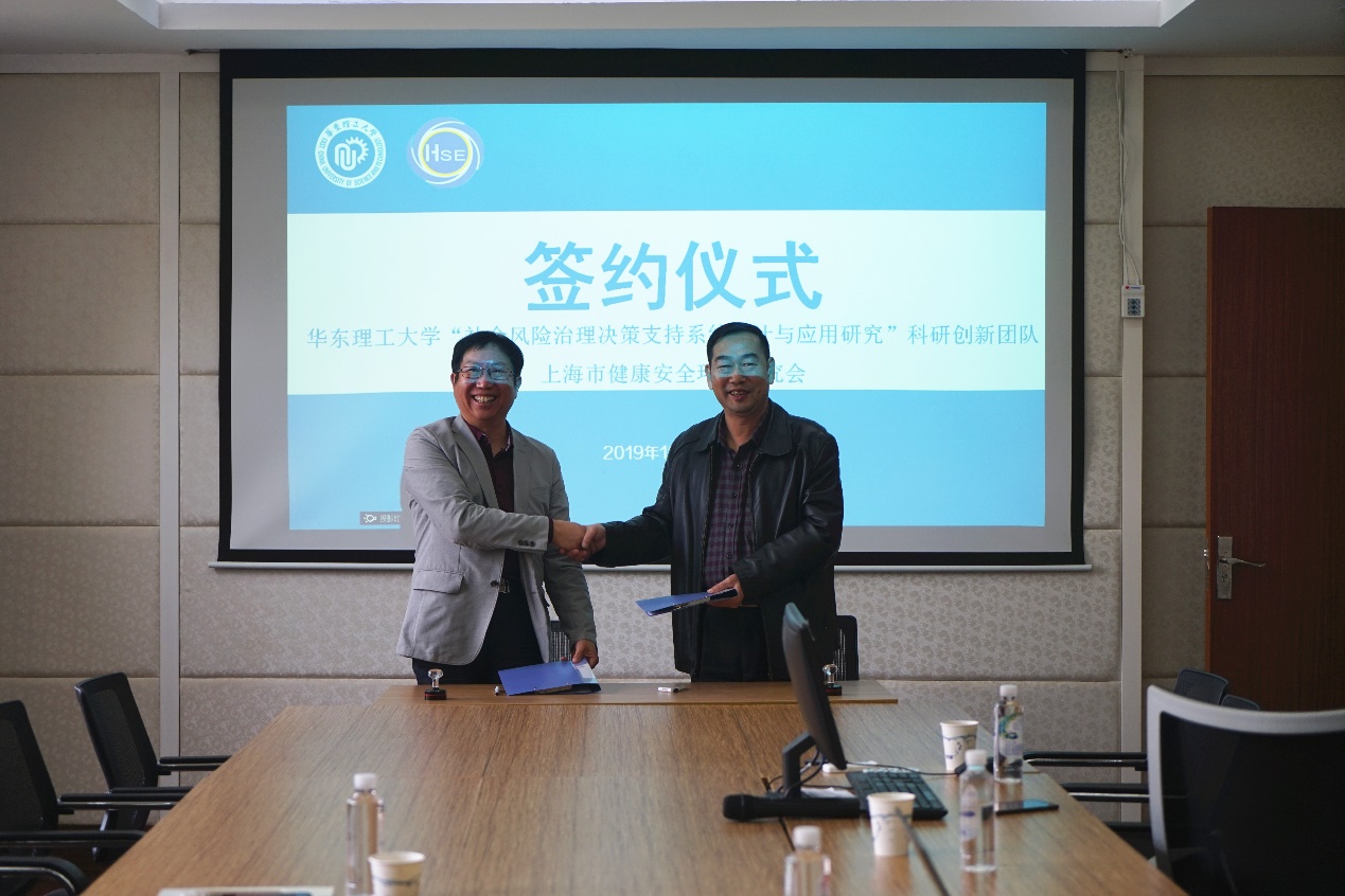 2019年10月30日,pg游戏电子模拟器“社会风险治理决策支持系统设计与应用研究”科研创新团队与上海市健康安全环境研究会合作协议签约仪式在pg游戏电子模拟器举行。院党委书记张广利教授、上海市健康安全环境研究会秘书长蔡东升博士等相关负责人出席签约仪式。