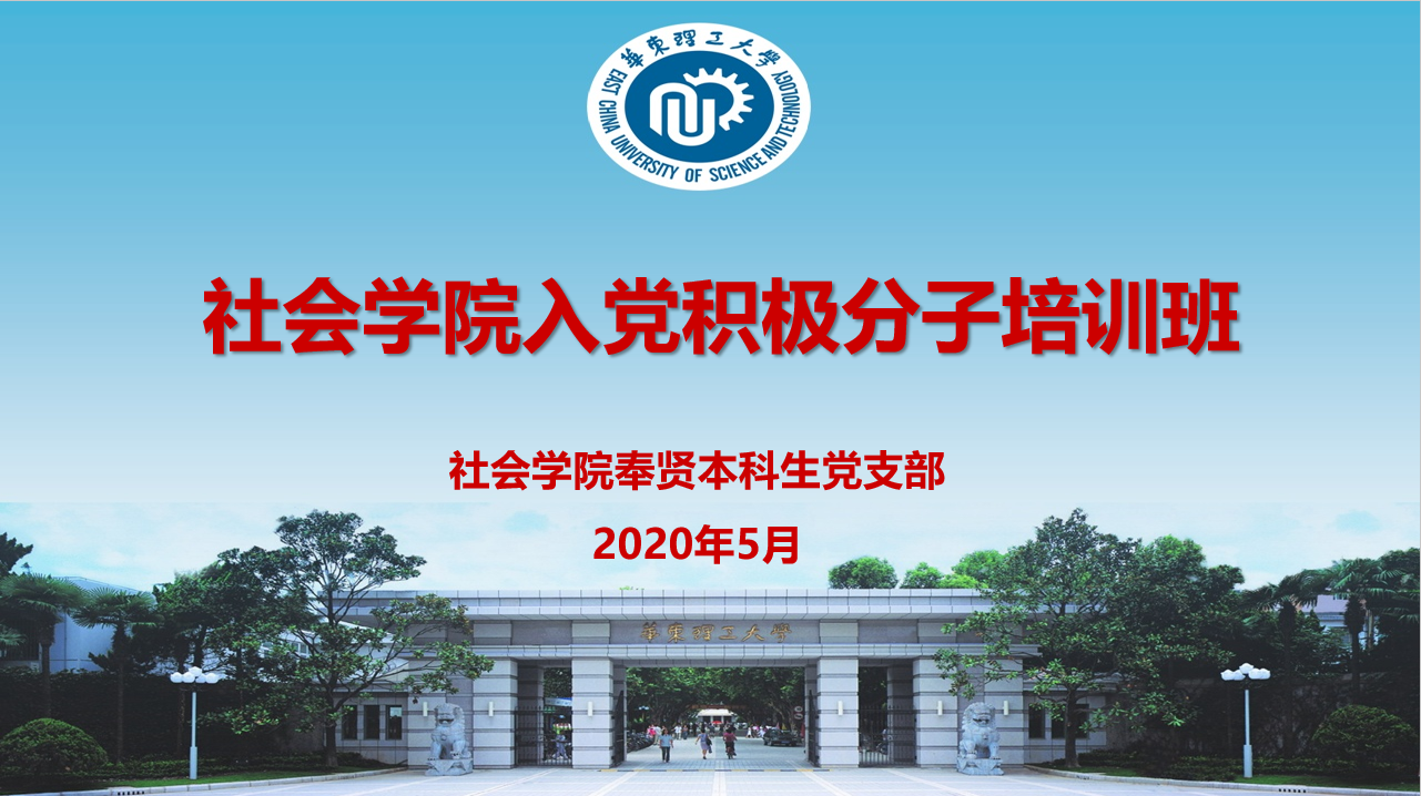 为深入学习贯彻习近平新时代中国特色社会主义思想,大力弘扬新时代爱国主义精神,切实做好入党积极分子的培养教育工作,进一步提高入党积极分子的基本理论素养,社会学院于2020年5月6日至5月31日在线上举办入党积极分子培训班,117位入党积极分子参加了培训班。