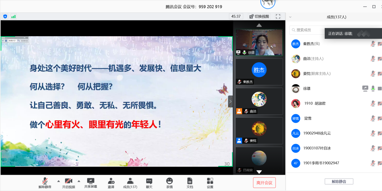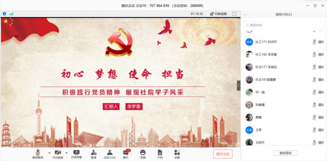 为提高党积极分子的政治思想觉悟,端正入党积极分子的入党动机,5月22日下午,社会学院举行党员分享交流会,高年级党员与入党积极分子交流自己入党之路上的所思所学所悟、分享入党心得。此次线上交流会增进了支部党员与入党积极分子的了解,使入党积极分子对自己的入党初心有了更深思考。