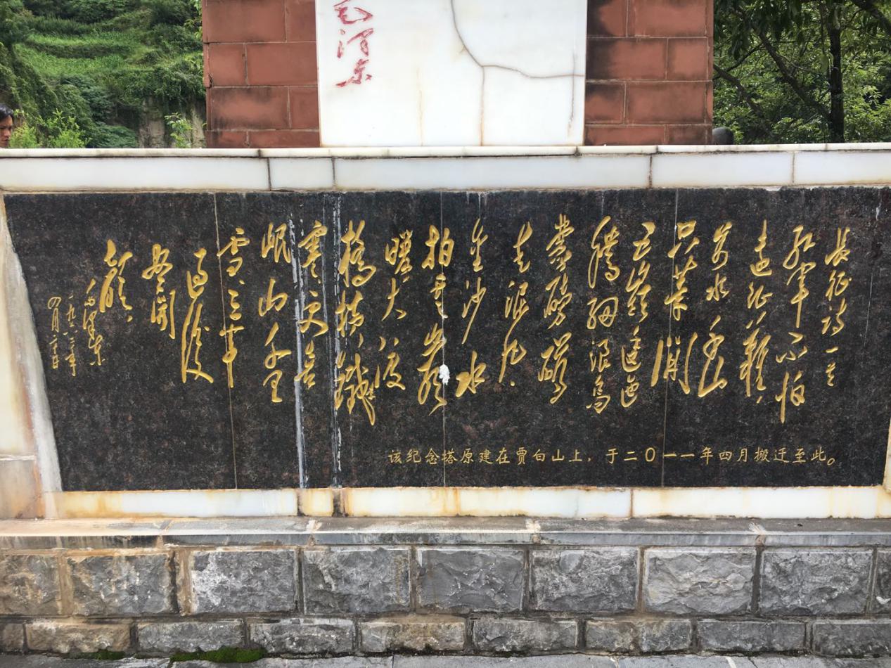 图为“六甲之战”纪念碑下的毛主席诗词