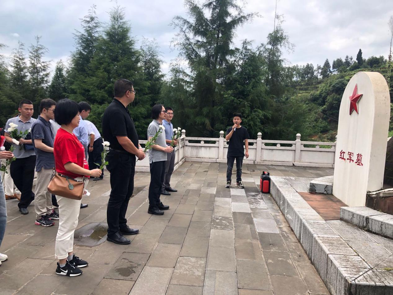 图为社工系党支部缅怀红军烈士并献鲜花