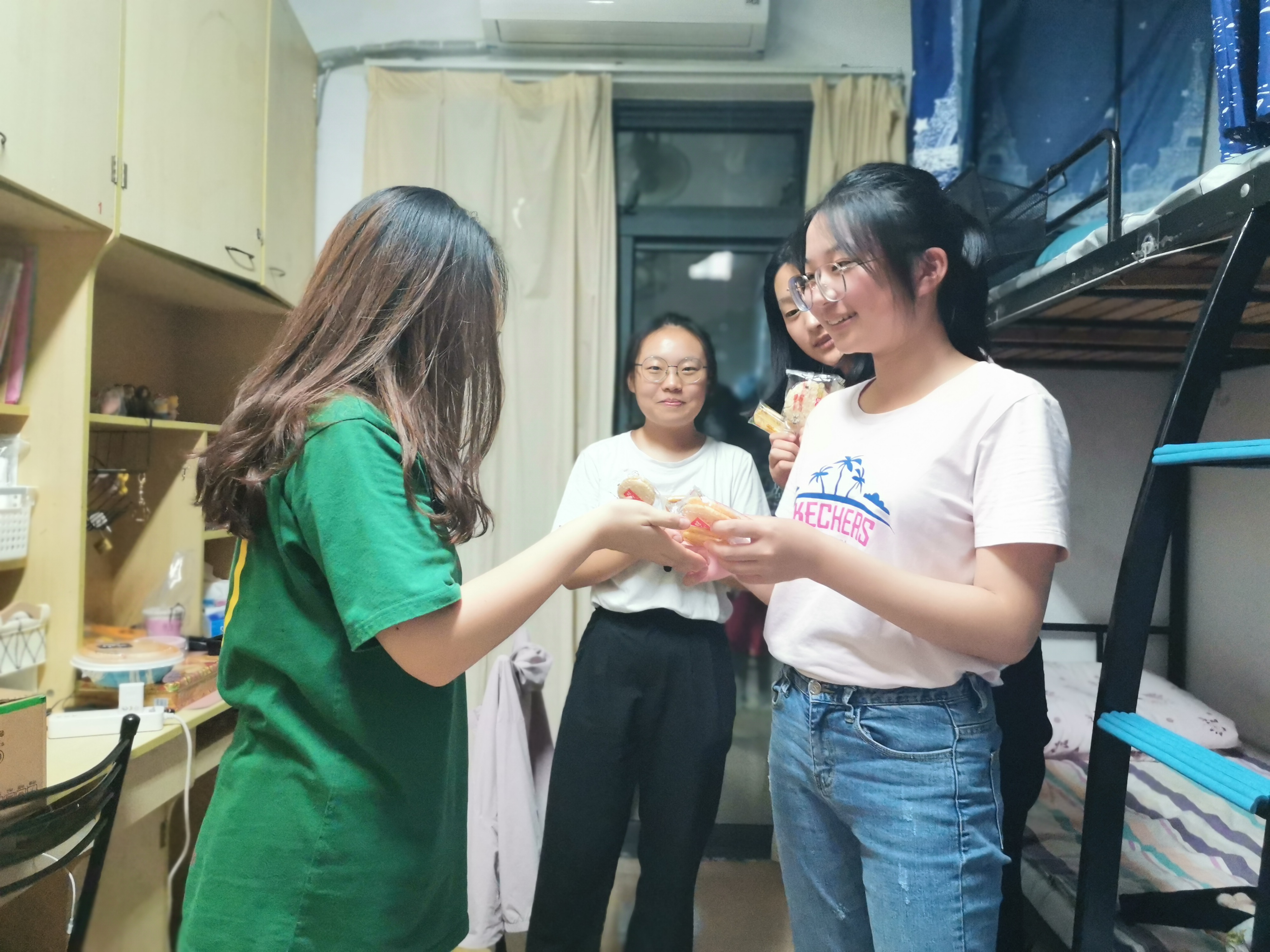 伴随着满月逐渐悬挂高空,中秋慰问活动正式开始。分别由院青志协副会季昊冉、院生活部部长张雅琪带领留校的团学成员前往男女新生寝室进行慰问,向男女寝室内的留校新生分发月饼和零食,并将留校新生聚在一个寝室座谈茶话,开始解答他们来到pg游戏电子模拟器之后对于各个方面的疑惑。