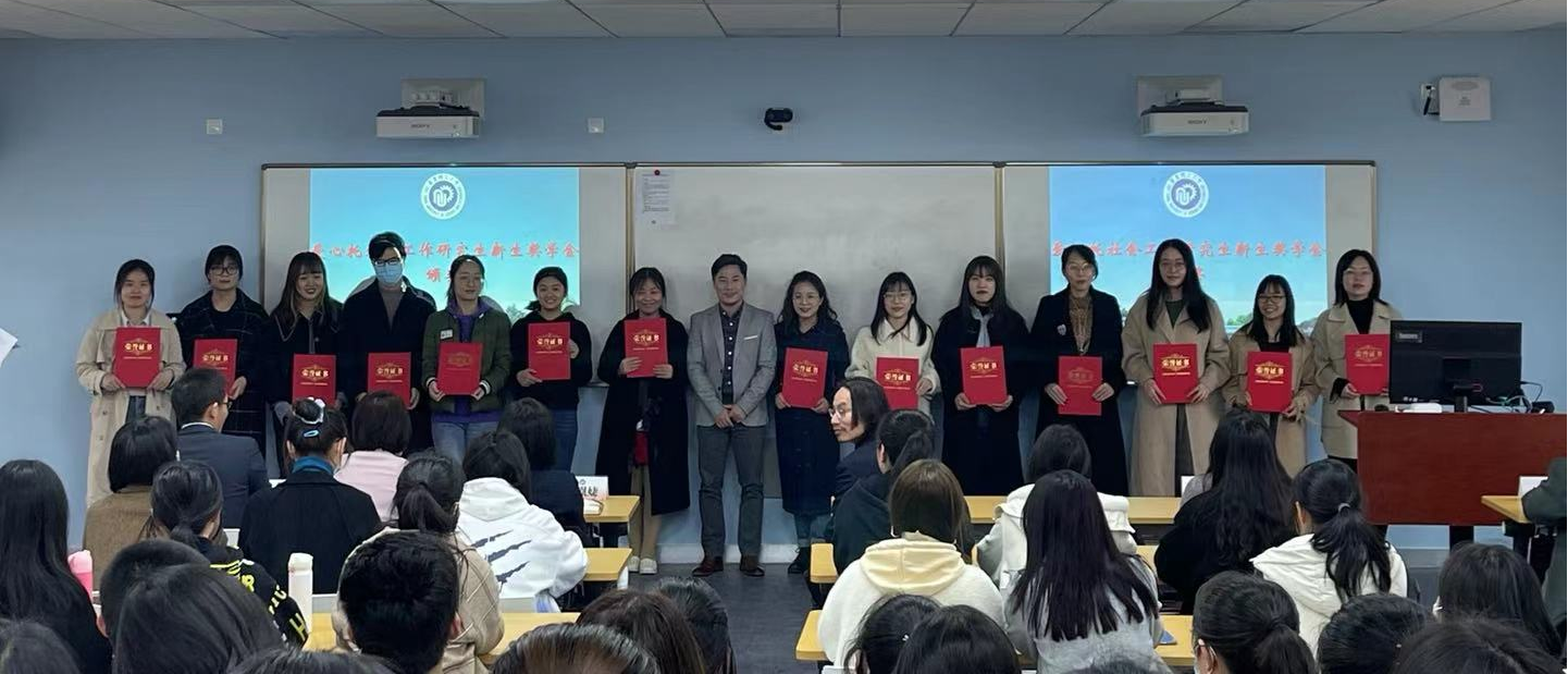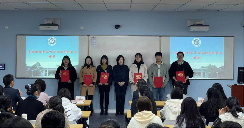 图3 段文杰教授为“爱心托社会工作研究生新生奖学金”获得者颁奖