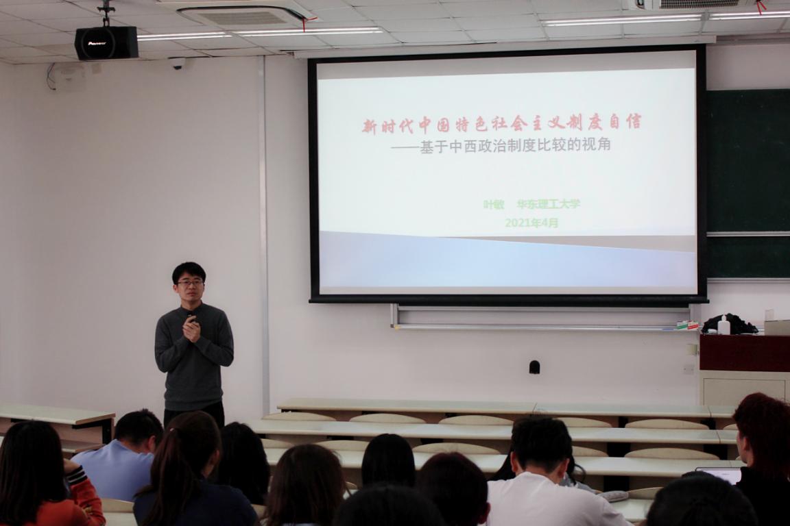 (图片说明:叶敏老师为社院入党积极分子开设专题党课)