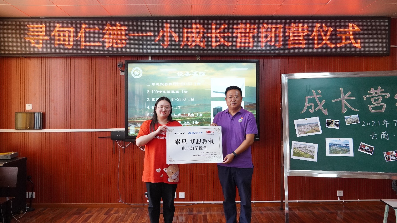 在成长营闭营仪式上,“云海寻梦”实践团队代表学院向仁德一小捐赠电子教学设备。