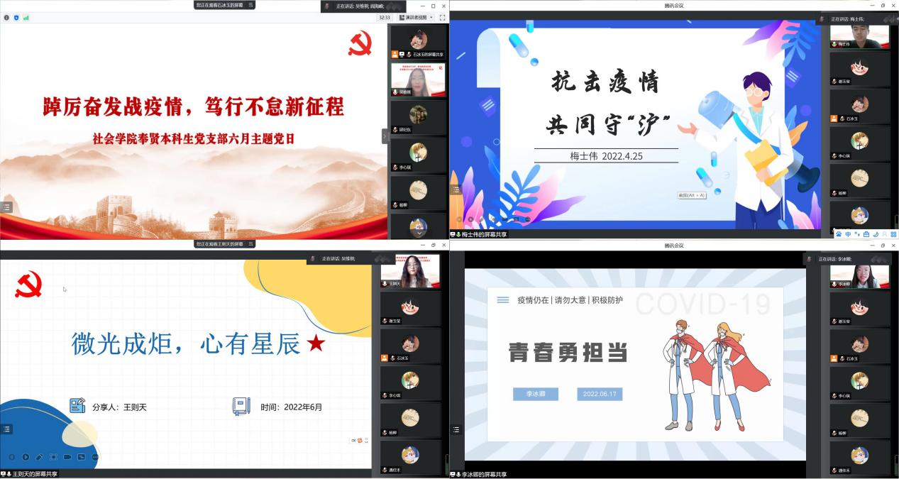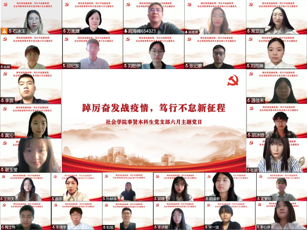 6月17日,社会学院奉贤本科生党支部召开“踔厉奋发战疫情,笃行不怠新征程”线上主题党日活动,分享抗击疫情故事,凝聚青春奋进力量。副校长阎海峰参加活动并讲话,党支部书记吴维祺主持活动。