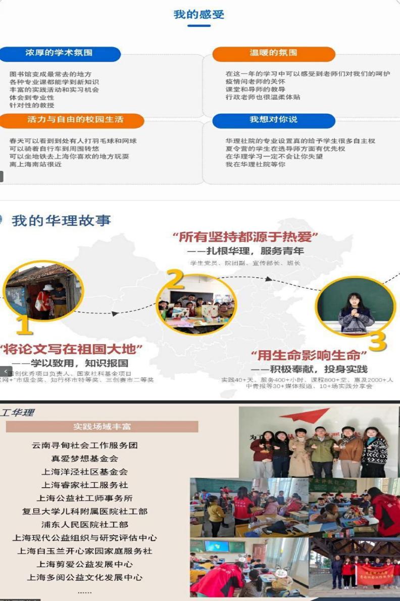 研究生管理办公室周璐介绍了本届夏令营的基本情况、优秀营员的选拔规则、注意事项以及接收2023年推荐免试生的情况。随后,社会学专业车佳明、行政管理专业吕高月和社会工作专硕王皓月三位同学和营员们分享了保研推免的经验,着重交流了在华理学习和生活等方面的心得与体会,活泼风趣的干货介绍,收获了营员们的高度评价。
