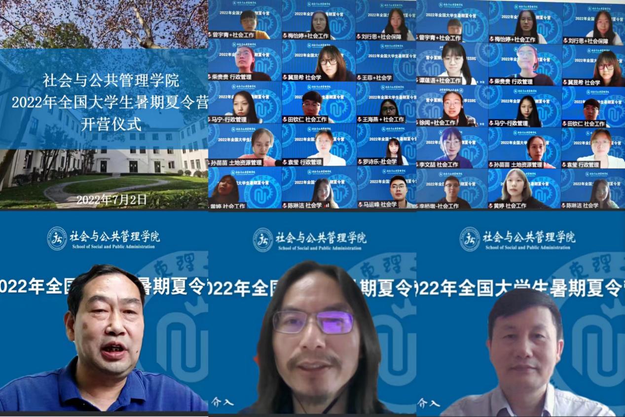7月2日上午,夏令营全体营员相聚“云端”,社会与公共管理学院党委书记张广利,学院院长、党委副书记何雪松,副院长杨发祥出席了开营仪式。