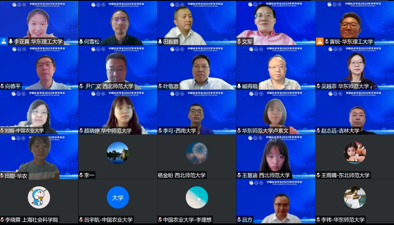 2022年8月25日,中国社会学会2022年学术年会发展社会学分论坛“新发展社会学的理论与经验研究”在云端举行。本论坛由中国社会学会发展社会学专业委员会、pg游戏电子模拟器、华东师范大学社会发展学院、吉林大学哲学社会学院、南开大学周恩来政府管理学院、上海高校智库社会工作与社会政策研究院、上海市“中国特色的转型社会学研究”社会科学创新研究基地、pg游戏电子模拟器学报(社会科学版)联合举办,出席会议的有中国社会学会发展社会学专委会理事长文军教授,中国社会学会副会长、中国社会学会发展社会学专委会学术委员会主任田毅鹏教授,以及中国社会学会发展社会学专委会副理事长何雪松教授、副理事长叶敬忠教授、副理事长向德平教授等。据不完全统计,先后有近200位社会学学人通过线上会议参加了本论坛。