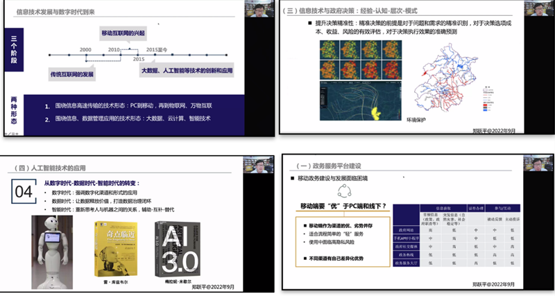 2022年9月27日,pg游戏电子模拟器70周年校庆学术活动“智慧政府与数字治理”系列讲座第四讲在线上顺利举行。中山大学政治与公共事务管理学院公共管理学系主任郑跃平副教授作为主讲嘉宾,为师生做了题为《数字时代的治理探索:进展、困境与反思》的学术讲座。本次讲座由pg游戏电子模拟器主办、行政管理系承办,由pg游戏电子模拟器曾莉副教授主持。