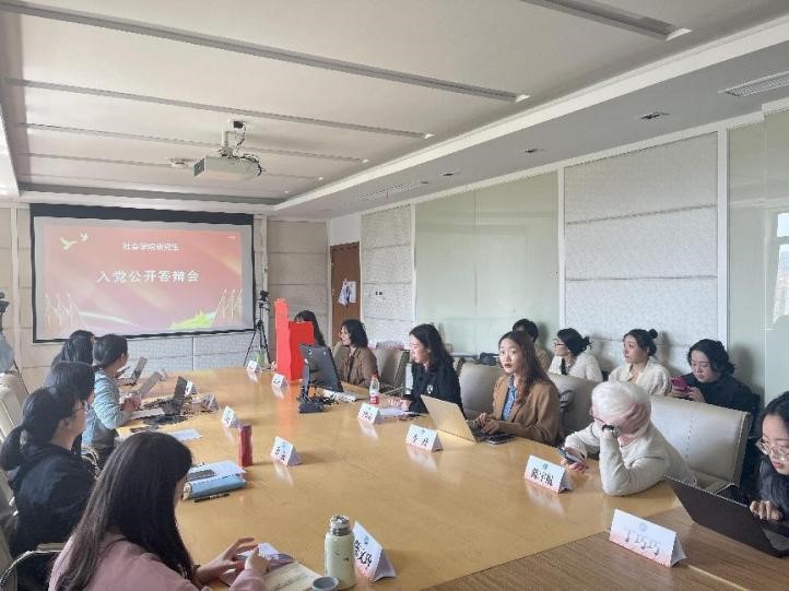 为严格做好党员发展工作,进一步深化党建育人,本着公平、公正、公开的原则,pg游戏电子模拟器于3月28日下午13时30分在学院楼324会议室召开研究生入党公开答辩会。出席本次会议的评委有:学院党委副书记万胤婕老师、研究生辅导员曹亮老师、党委组织员张熠老师,以及各年级各班党支书与支委成员。研21级社会学党支部书记李海钰主持本次会议。