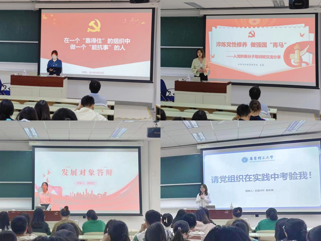 本次培训班课程安排合理、形式丰富。除了专题讲座之外,学院还安排了发展对象公开答辩和学生党员分享交流,同时鼓励学员们利用“学习强国”APP进行自主学习。在专题讲座环节,学院分别邀请了马克思主义学院崔美娜老师、社会学系教工党支部书记马流辉老师和社会学院院长何雪松老师主讲。崔美娜老师关于“以中国式现代化全面推进中华民族伟大复兴”的主题讲座带领同学们回顾了中国式现代化的演进逻辑,介绍了何谓“中国式现代化”,并从马克思主义的角度为同学们解答了中国式现代化如何实现价值超越;马流辉老师以习近平给中国农业大学科技小院的同学们的回信起头,引入“当代青年如何在乡村振兴中建功立业”这一主题,并结合政策和学术阐述了乡村振兴战略的重大意义,他勉励学员们努力学习专业知识,提高个人素养,为乡村振兴贡献青年力量;何雪松老师以“在推进社会治理创新上有新作为”为题,强调了社会治理之于国家治理的重要性,并指出“青年是祖国的前途、民族的希望、创新的未来”,鼓励同学们创新引领、有所作为。三位老师的专题讲座全方位、多维度、深层次地对学员们进行思想教育,帮助学员们进一步端正入党动机,提高党性修养,进一步加深对党员身份和责任的领悟。