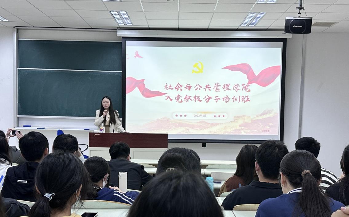 为深入学习宣传贯彻党的二十大精神,推进学习贯彻习近平新时代中国特色社会主义思想主题教育,切实做好入党积极分子的培养教育工作,进一步提高入党积极分子的理论素养。2023年4月至5月,社会学院举办入党积极分子培训班,学院各年级的92名入党积极分子参加了本次培训。本次培训共安排5次课程,包括三场主题党课、一场发展对象公开答辩观摩及一场党员分享交流,并在培训课程结束后进行了结业考试。