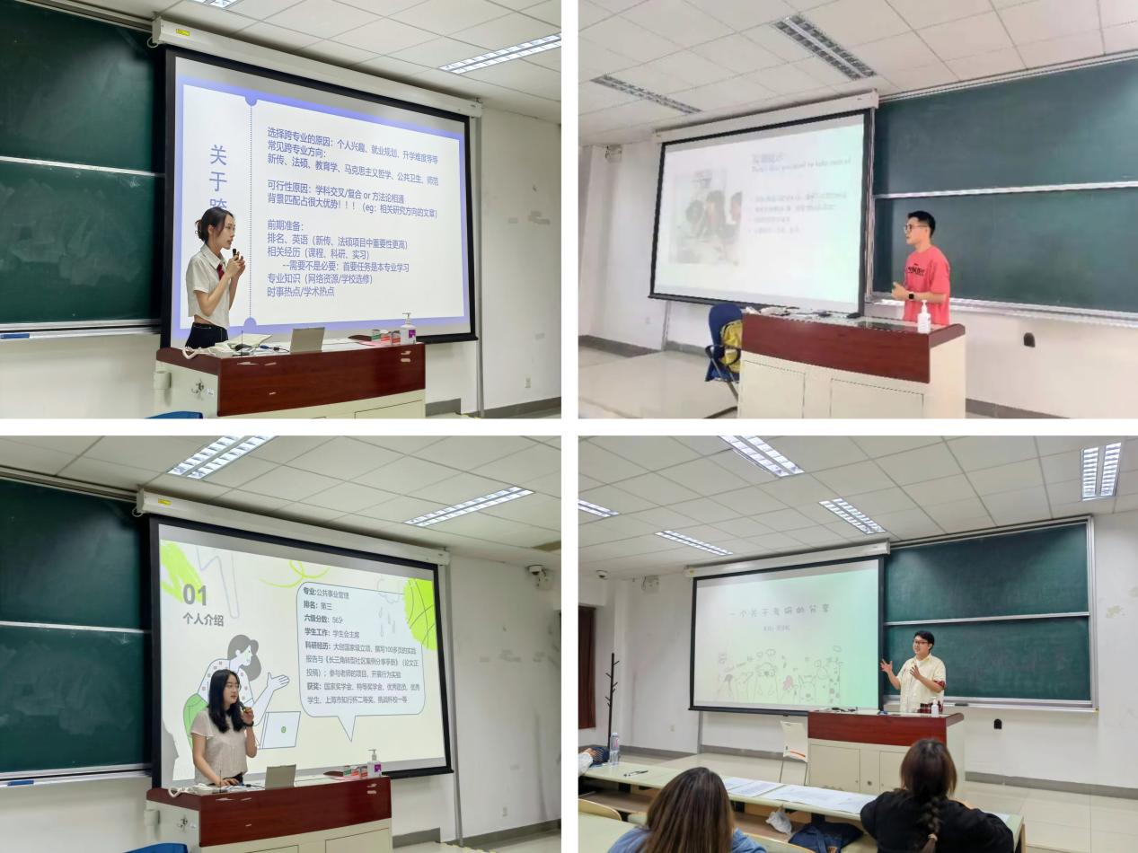 在求职和考公专场,六位主讲人分别从职业选择、备考经验、简历制作、面试准备等方面介绍了经验,引导学弟学妹尽快明确就业目标,增强就业技能,提高就业竞争力;考研专场参与人数突破150人,四位主讲人分别从考研择校、英语政治备考、专业课提优、面试准备、跨考准备和心态调整等方面分享经验,建议大家明确读研深造初心,提前发掘自身感兴趣的研究方向;在留学专场,主讲人着重讲解了留学申请的前期准备、择校策略和简历润色方法,建议大家打破信息差、突出个人优势经历;在保研专场,主讲人详细介绍了保研时间线、各阶段计划安排、文书资料准备、夏令营和预推免安排等,提醒保研的同学抓住机会,调整好心态,合理安排时间。