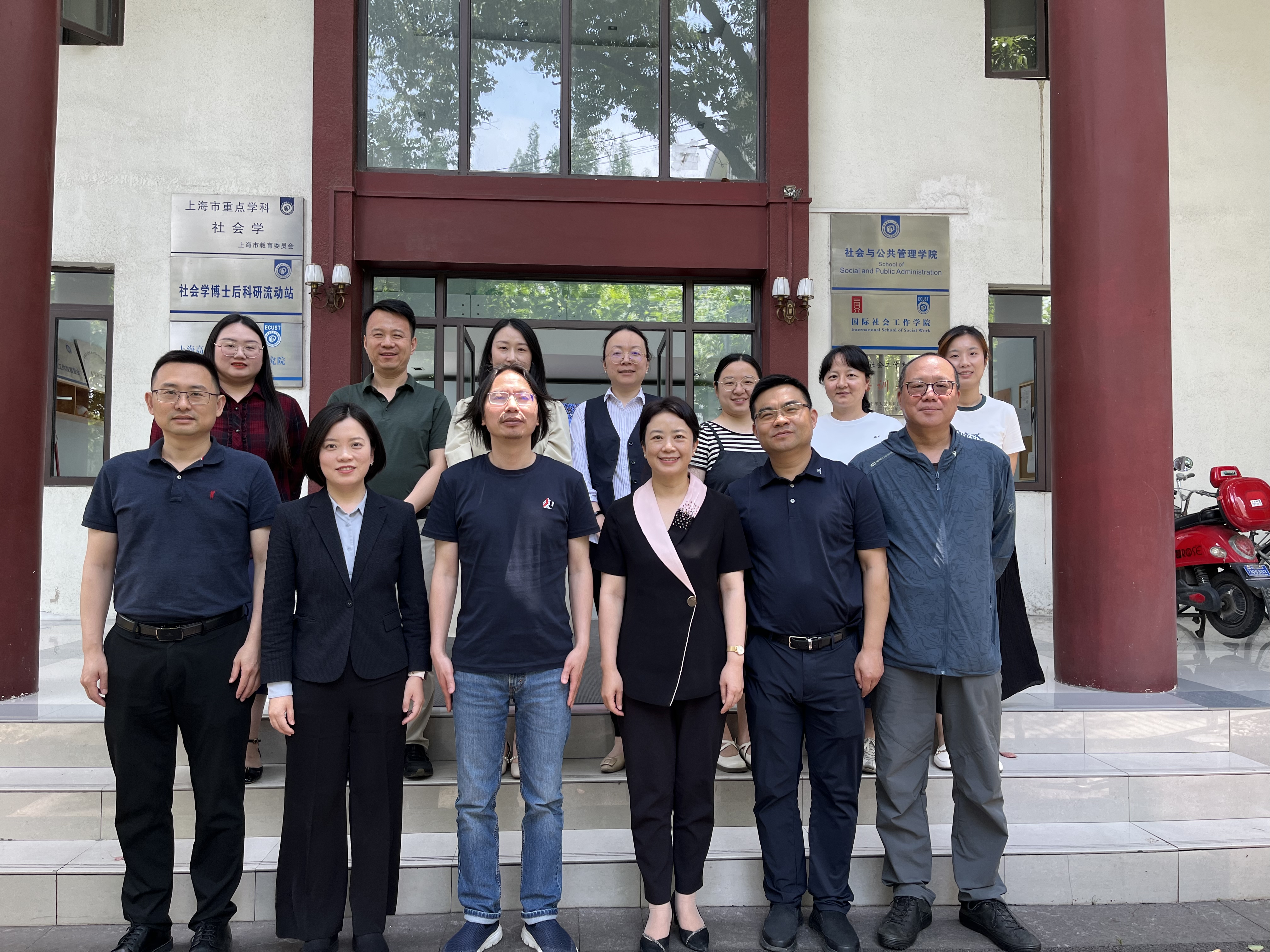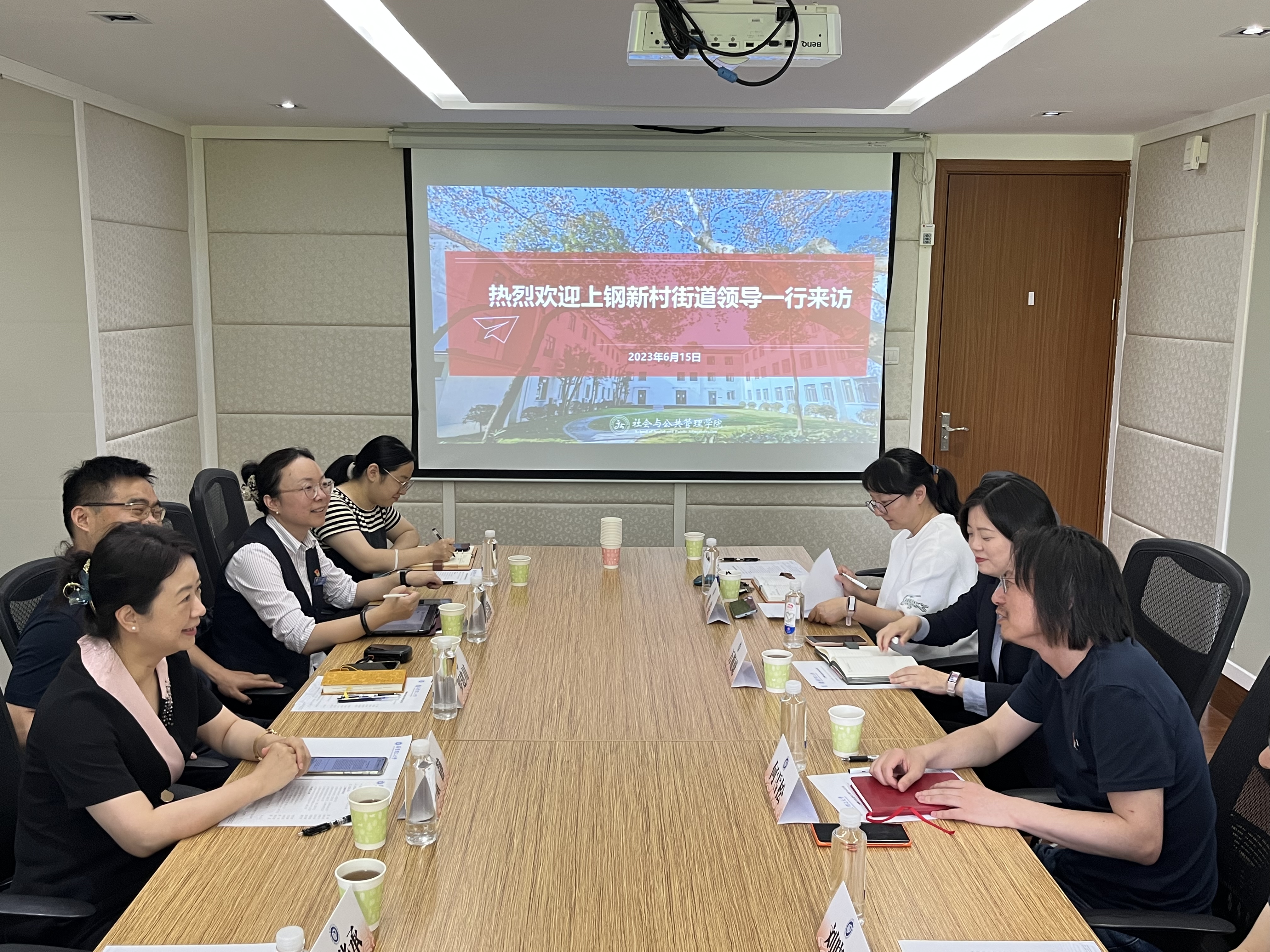 院长何雪松就学院学科设置、师资力量、培养目标及就业发展等基本情况进行了介绍,他表示,基层社会治理是党的二十大提出的重要议题,要以基层治理高质量发展助推中国式现代化,上钢新村街道的基层治理模式为高校的案例教学提供了优质的案例范本。街道党工委副书记董静感谢学院的邀请,对校地双方的互动形式表示高度认可,其从新老社区形态混搭、中西居民混居、高层次人才聚集等特点对上钢新村街道的基本情况进行了介绍,希望本次的调研走访为优化基层治理高质量发展进一步助力。上钢新村街道党工委委员、办事处副主任罗建川以实际案例详细剖析了基层社区治理的难点和痛点,欢迎学院师生走访街道调研完善。