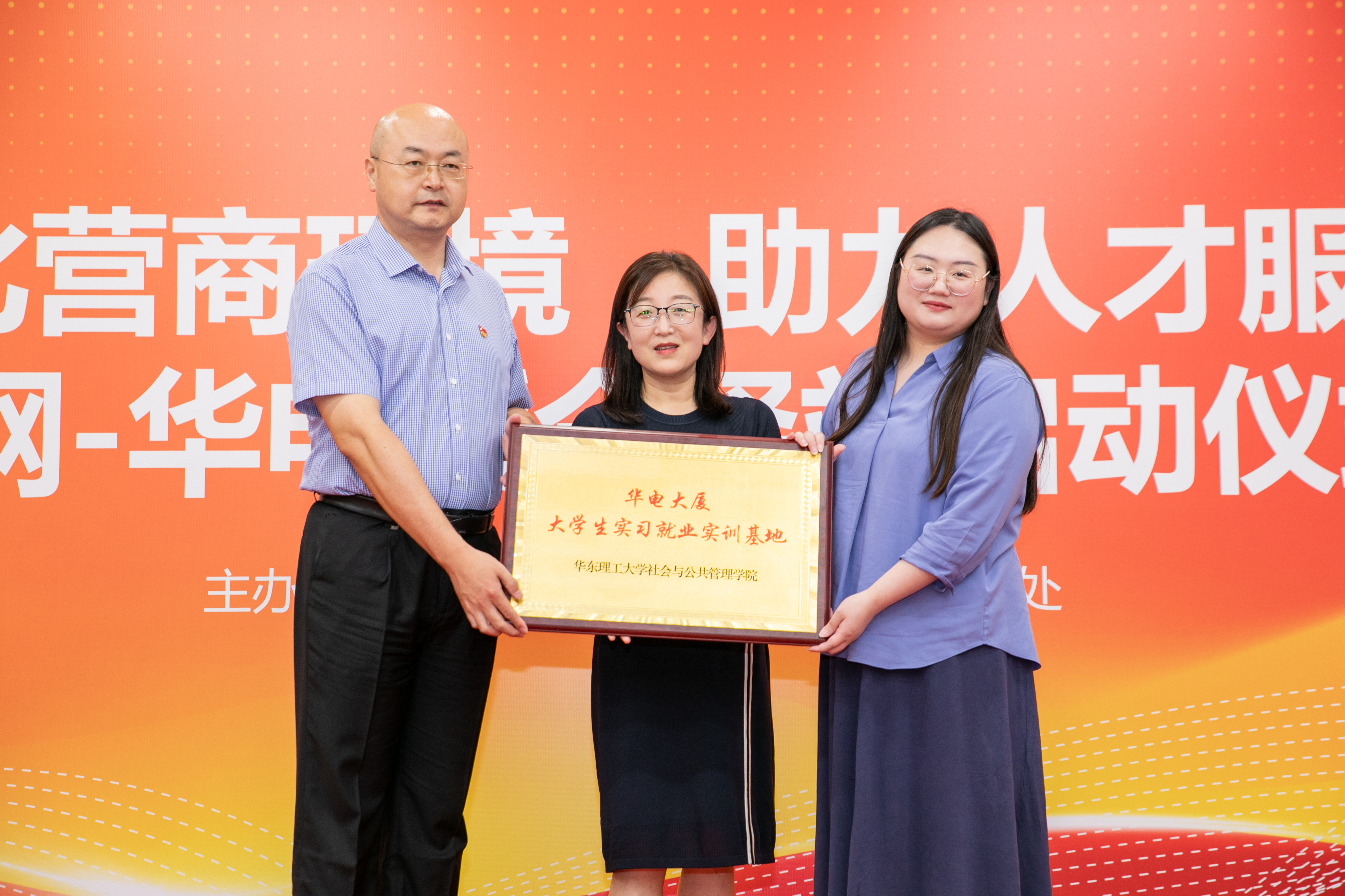 浦东新区人社局就业促进和社会保障处赵云瑞副处长为华电大厦大学生实习就业实训基地授牌。实习就业实训基地的建立,标志着社会学院就业培育工作的半径从校内向校外延申,基于校地合作探索新的学生就业发展辅助制度。