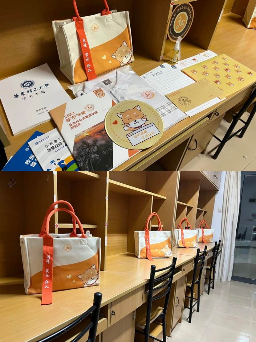 举措四:暖心大礼包,给新生准备一份独特惊喜,精心准备鼠标垫、帆布袋、驱蚊液、扇子等学院特色文创产品;贴心设计、印制新生的导“茫”手册;制作校庆主题的文化衫赠送新生;宿舍楼的许愿树与许愿卡片让新生提前规划自身的发展路线;提前招募大批志愿者,帮助新生搬运行李,引导新生进行报到等事宜。