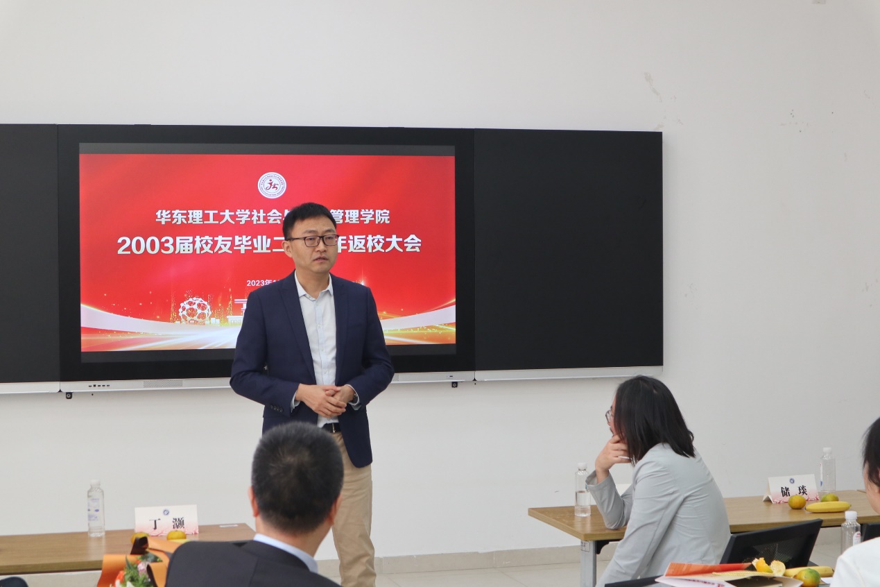 上午9点半,返校大会在第三教学楼109会议室隆重举行,大会由学院党委副书记储琰主持,学院院长何雪松、教师代表俞慰刚、丁灏出席会议,与校友们共忆青葱岁月。