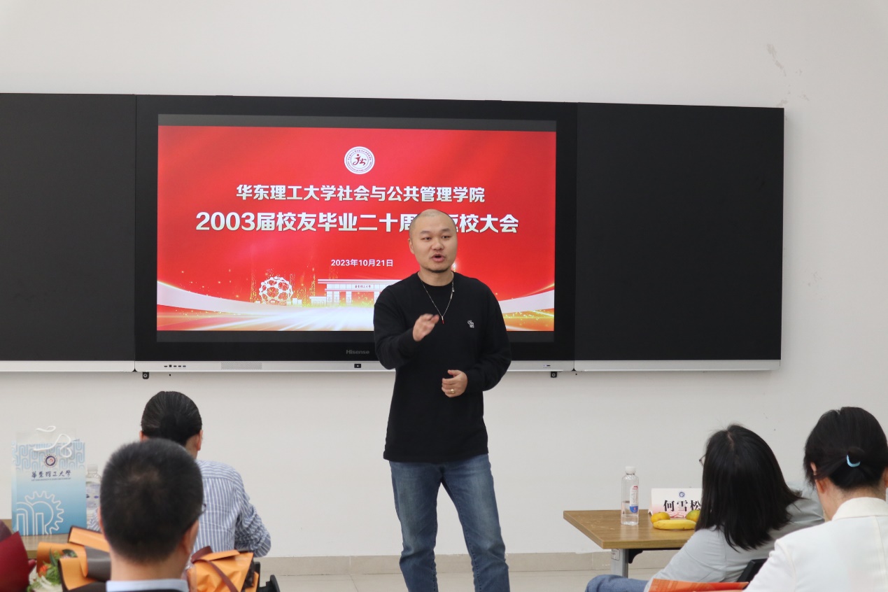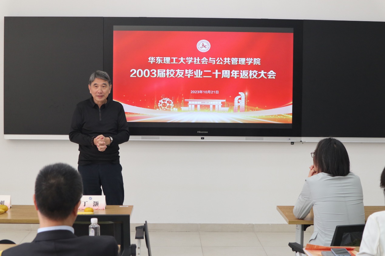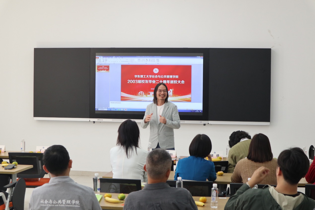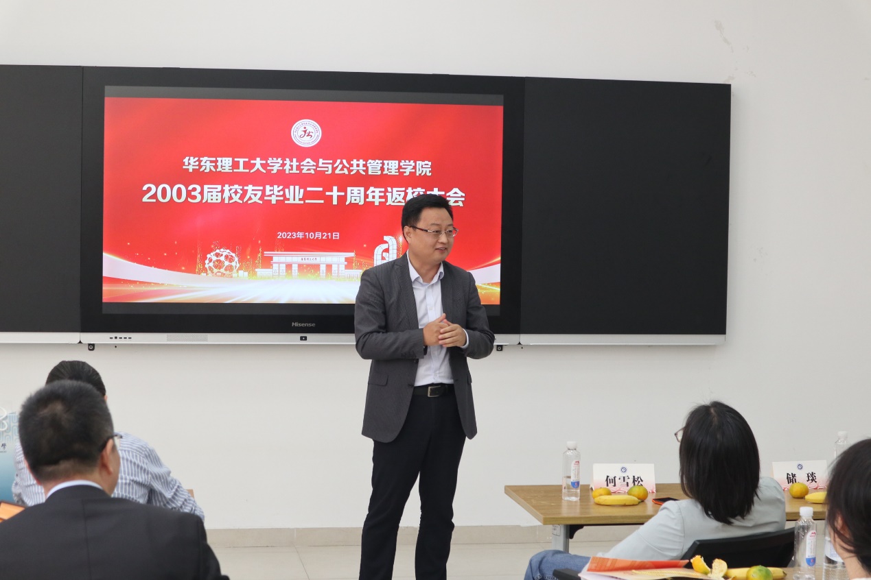 接着,院长何雪松代表学院全体师生欢迎校友们的到来,并从学科发展、学科建设、师资队伍、学生培养、校友工作等方面介绍了学院的发展情况。二十年不仅是各位校友的成长岁月,也饱含着社院蓬勃发展的印记。