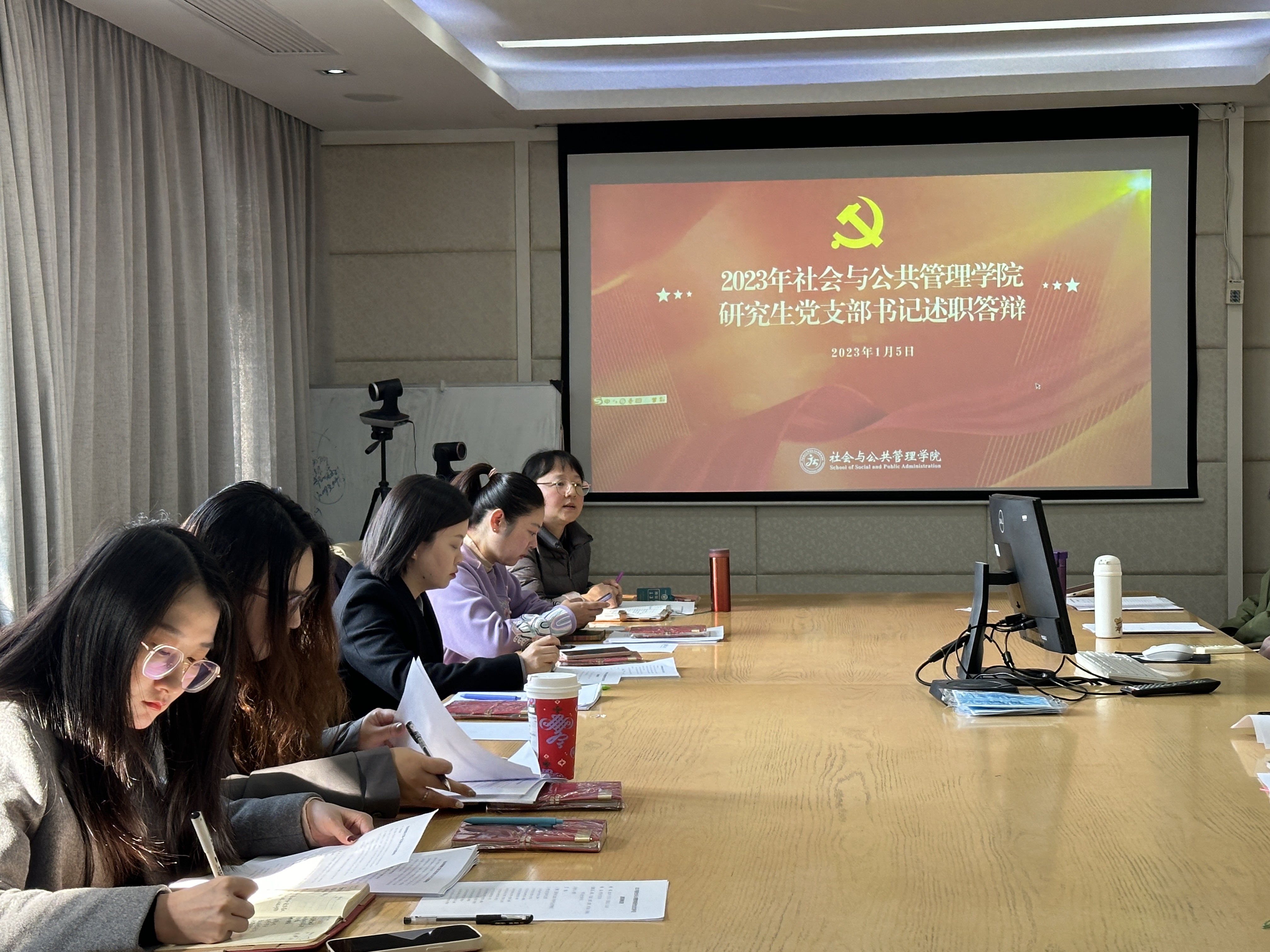 会上,曹亮就2023年度研究生支部党建情况进行介绍。本年度研究生党支部在组织生活、主题党日等各类活动开展方面,以及队伍建设、党员发展、服务群众方面取得显著成效,党员获得成长,活动内涵更为丰富,活动形式更为创新。希望各支部以述职为契机,相互学习优秀的党建工作经验,进一步提升党组织凝聚力。随后,14位支部书记依次进行述职,就本年度支部基本情况、党员发展情况、党建工作亮点等进行介绍,认真进行问题查摆及下一年度的工作部署。