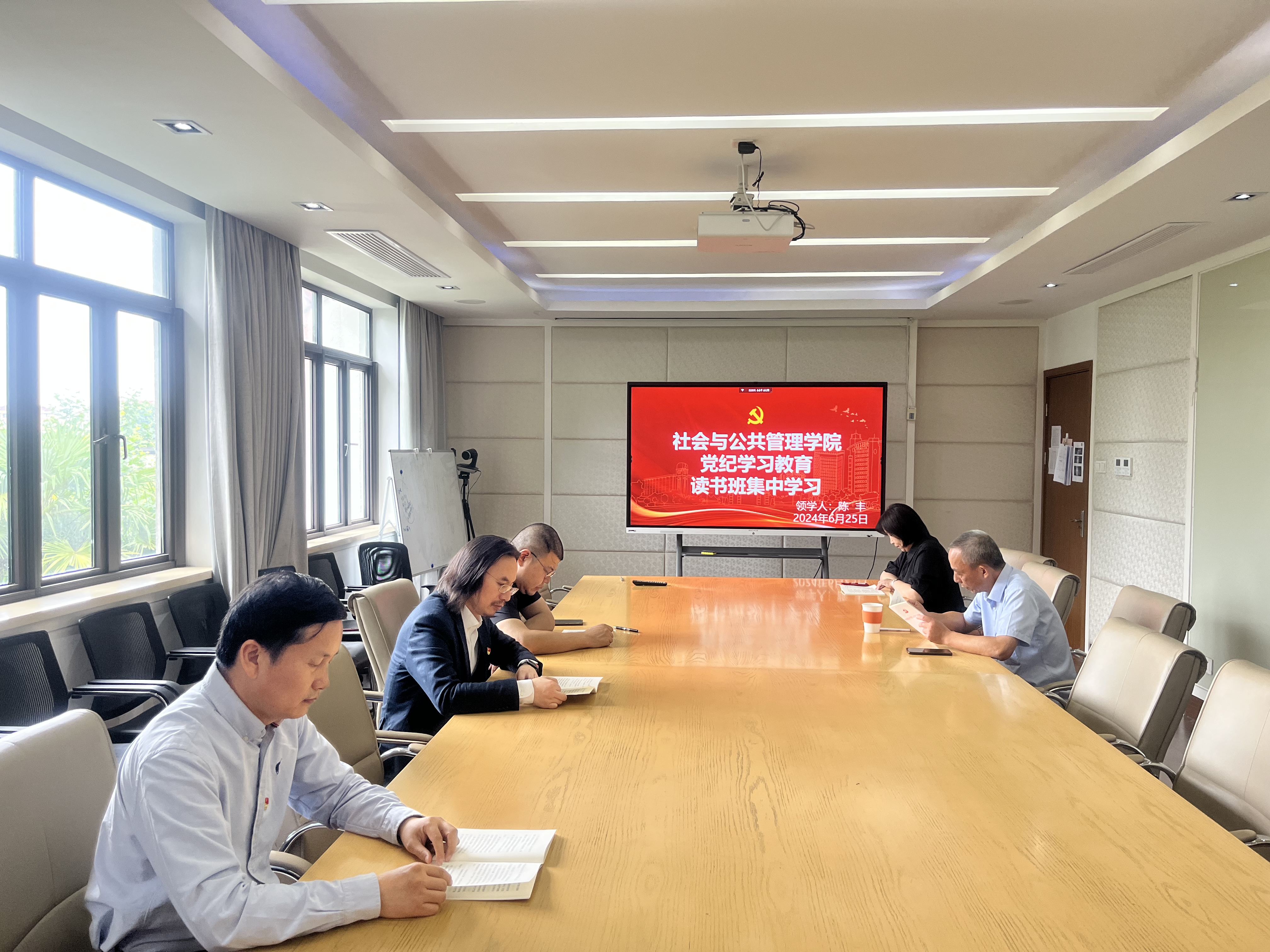 6月25日,pg游戏电子模拟器党委中心组按照《中共pg游戏电子模拟器社会与公共管理委员会开展党纪学习教育实施方案》开展党纪学习教育第四次读书班活动,由学院党委委员、副院长陈丰同志领学《中国共产党纪律处分条例》第十章和第十一章内容。