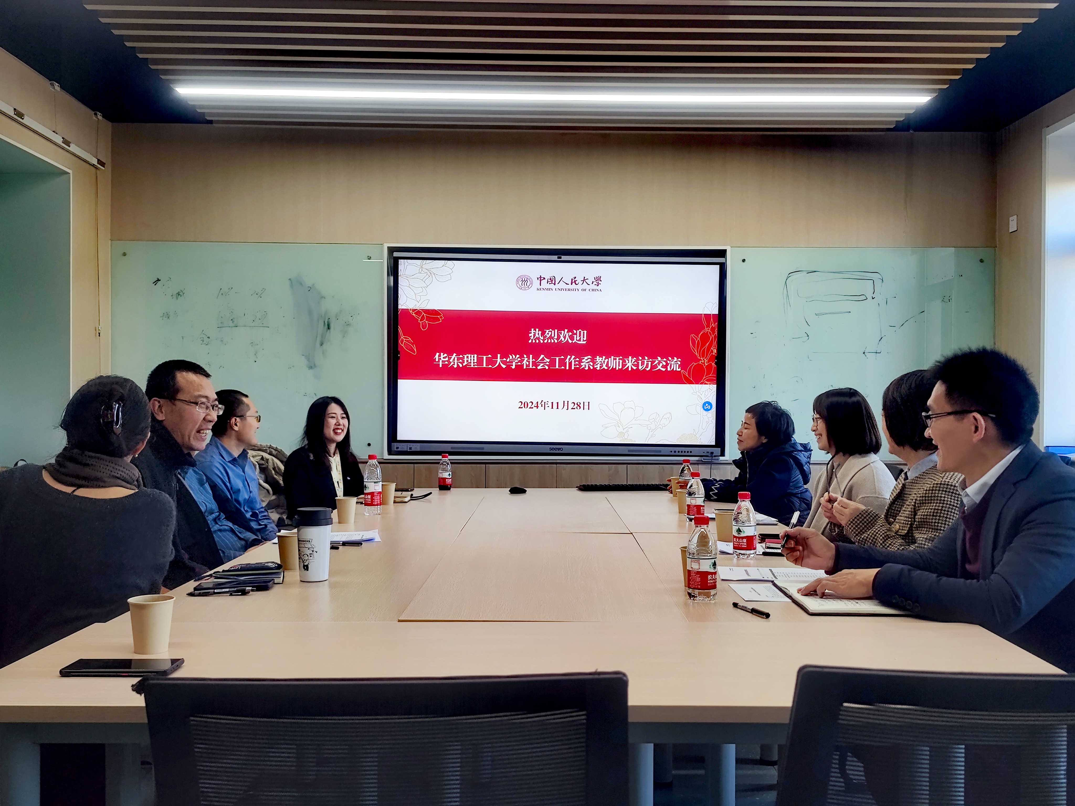 为进一步加强社会工作一流专业建设,助推社会工作更好地服务国家经济社会和基层治理现代化目标,2024年11月28日下午,pg游戏电子模拟器社会工作系系主任朱眉华教授、副系主任徐选国副教授、青年教师焦克媛博士一行3人赴中国人民大学社会学院社会工作系进行专业建设、学科发展、教育教学经验交流。中国人民大学社会工作系系主任卫小将教授、副系主任吕楠副教授、党支部书记赵晰博士、《社会建设》编辑部主任何欣副教授、MSW实习主任徐硕博士、本科实习主任王阳博士,正在中国人民大学开展访学的云南大学民族学与社会学学院刘建娥教授,以及3名博士研究生共同参与了此次经验交流会。