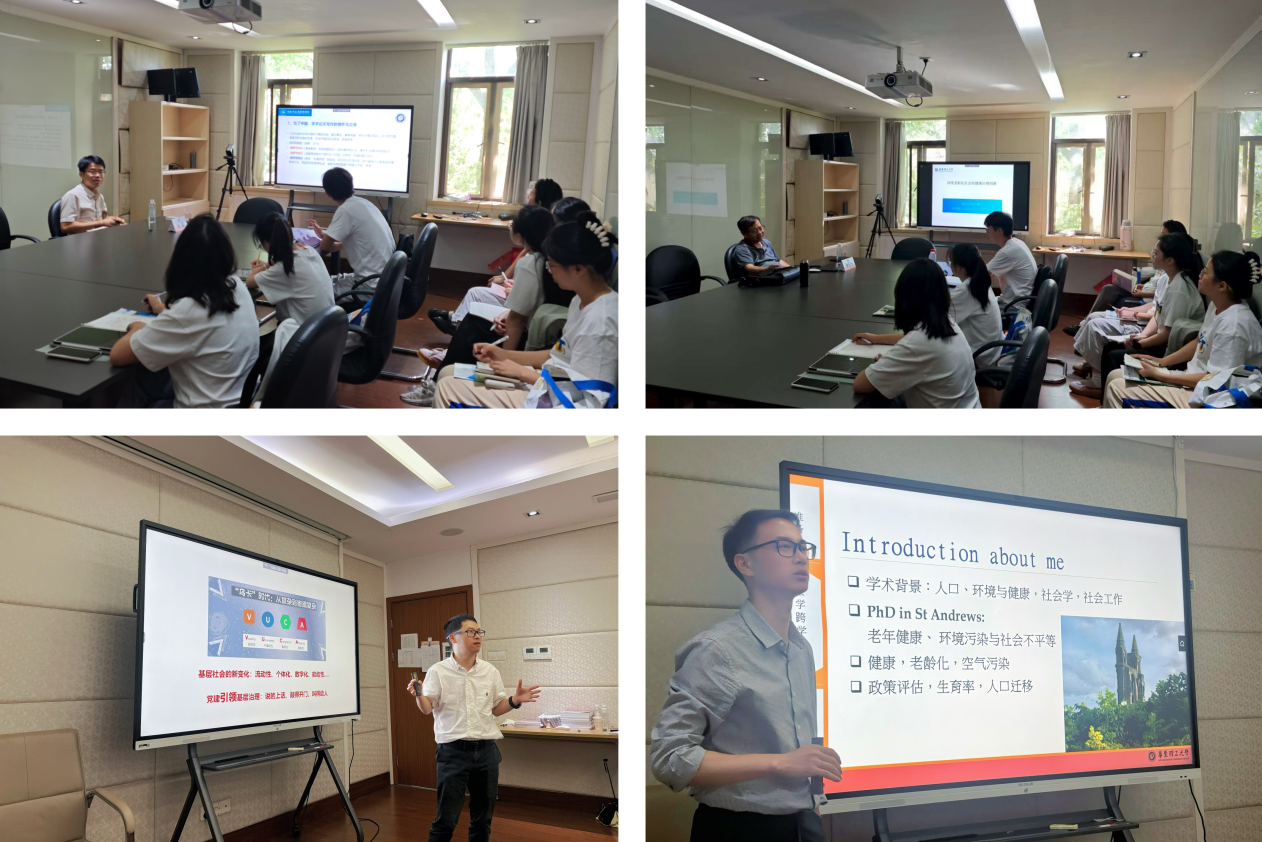 7月7日下午,社会学一级学科的营员们在团结二楼324会议室,先后聆听了唐有财教授题为《中国基层社会治理的内在逻辑及其社会学的学科使命》和胡开特聘副研究员题为《“跨越边界”—社会学跨学科研究的路径与挑战》的讲座报告。同时,公共管理学一级学科的营员们在团结二楼318会议室先后聆听了叶敏教授题为《如何把论文写在祖国的大地上》和龚秀全教授题为《深度老龄化社会的健康治理创新》的讲座报告。