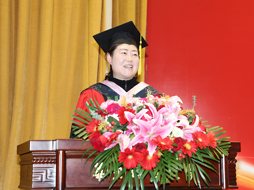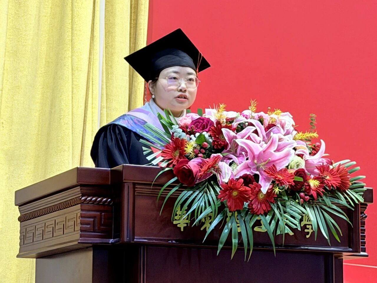 公共政策系导师朱琳老师向全体毕业生表示衷心的祝贺,并提出三点期许:一是永葆求知之心,将学术训练中习得的能力转化为持续破解难题的核心素养,深耕不辍。二是坚守内心笃定,以踏实笃行的姿态在各自领域沉淀成长,行稳致远。三是常怀爱院荣校之心,铭记母校是永远的精神坐标与坚实后盾,常念常往。最后,她祝愿毕业生前程似锦,万事顺遂。