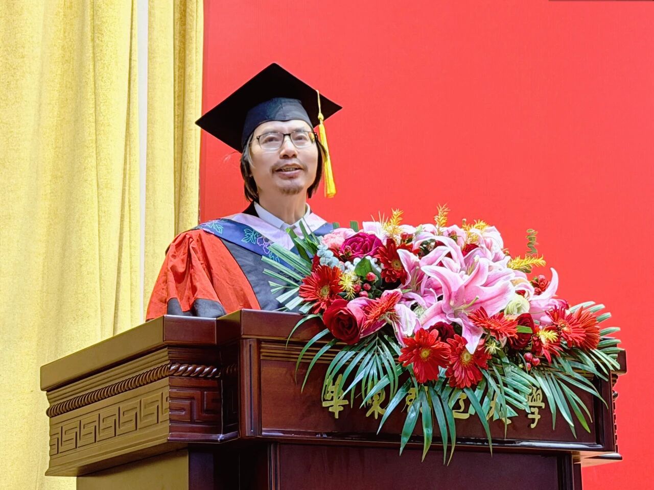 何雪松以“时间、空间、关系”三个关键词,为同学们上了毕业前的最后一课。关于时间,他指出学时光连接过往与未来,需以坚韧直面坎坷;谈及空间,他叮嘱同学们既要胸怀广阔、不局限于校园,也需铭记母校,同时正视当下实体与虚拟空间交织的现状;对于关系,他强调人与人之间的连接是成长发展的重要根基,求学中结识的师生、同窗情谊,以及学院这份“精神家园”般的联结,会超越时空延续。何雪松感谢学生成长中的家长支持与导师付出,并邀请毕业生转换为校友角色后常回学院看看。他希望毕业生与学院保持超越时间、跨越空间的永恒关系,寄语毕业生传承学院精神,常怀助人之心奔赴新程。